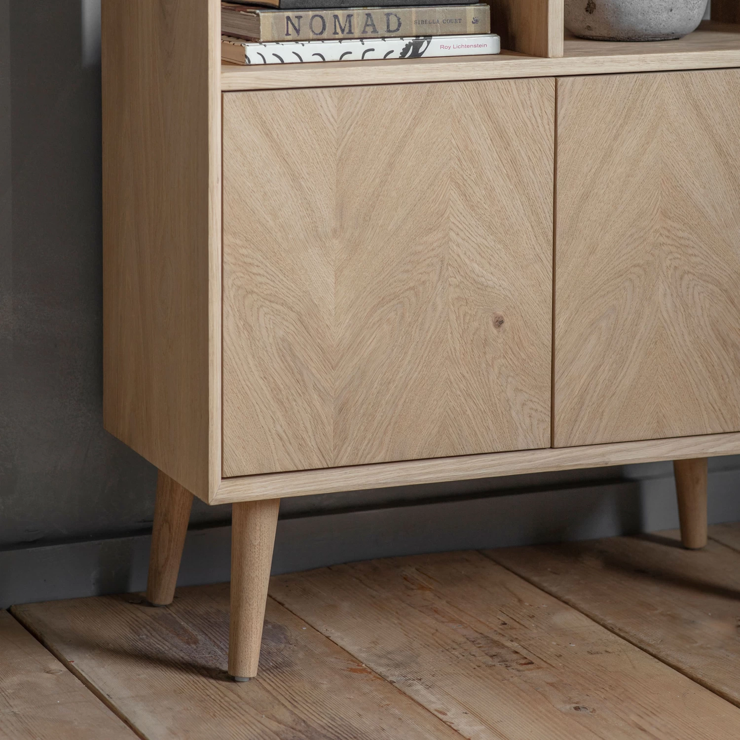 Flush finish doors show the stylish chevron pattern and the true beauty of the oak.
