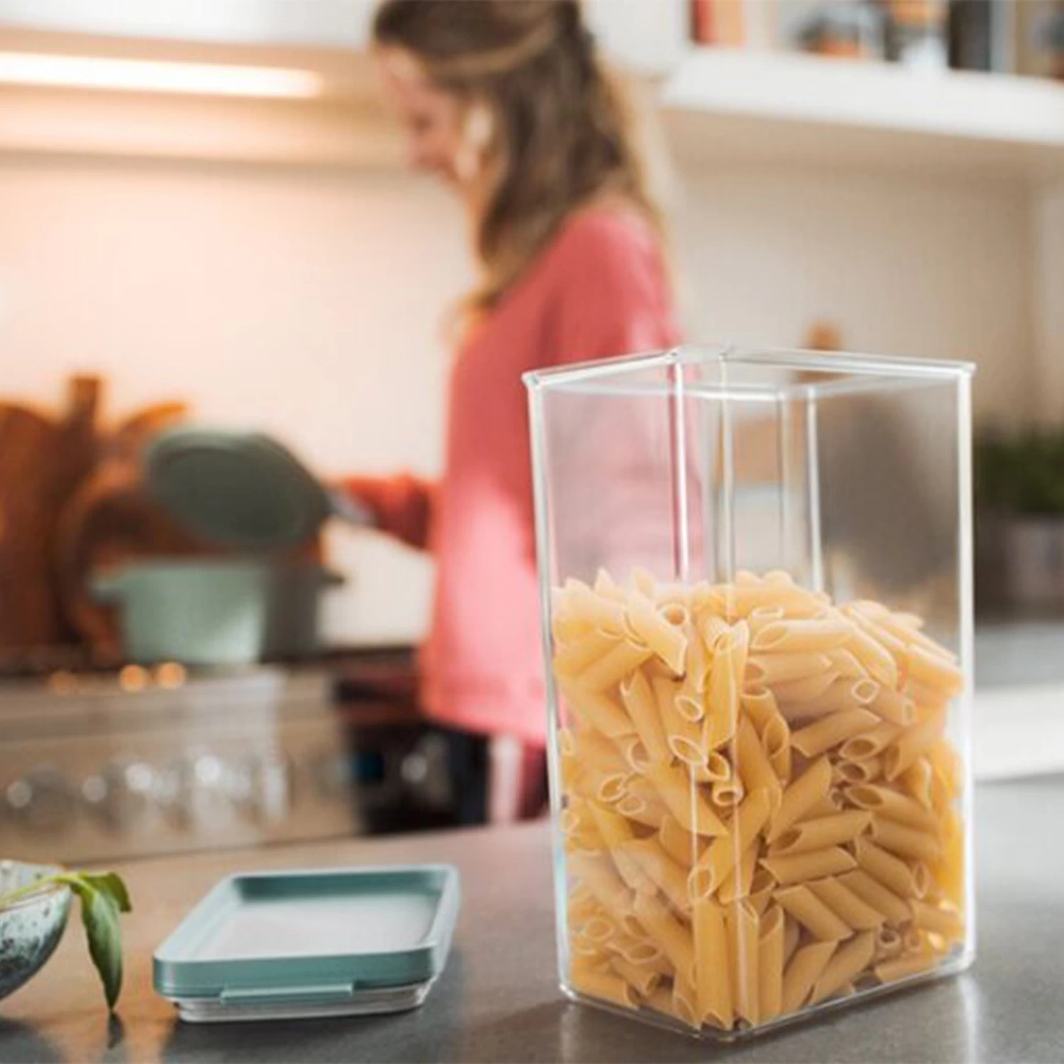 Our stylish new set of three acrylic kitchen storage canisters have a squared-off profile which means that you can make best use of space inside your kitchen cupboards and on your pantry shelving using every nook and cranny (unlike traditional rounded food storage jars which don’t make efficient use of storage space).
