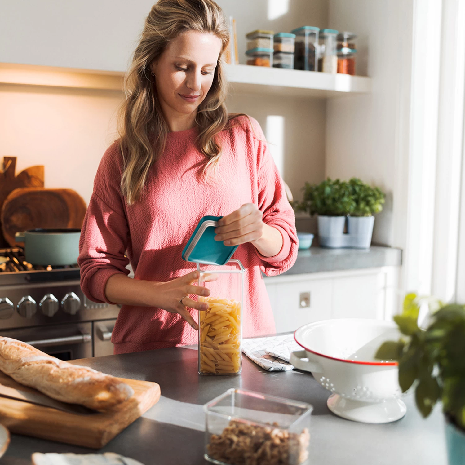 The colourful lids are indented for perfect stacking and create an air and aroma tight seal, ideal for aromatic coffee and crispy cornflakes.