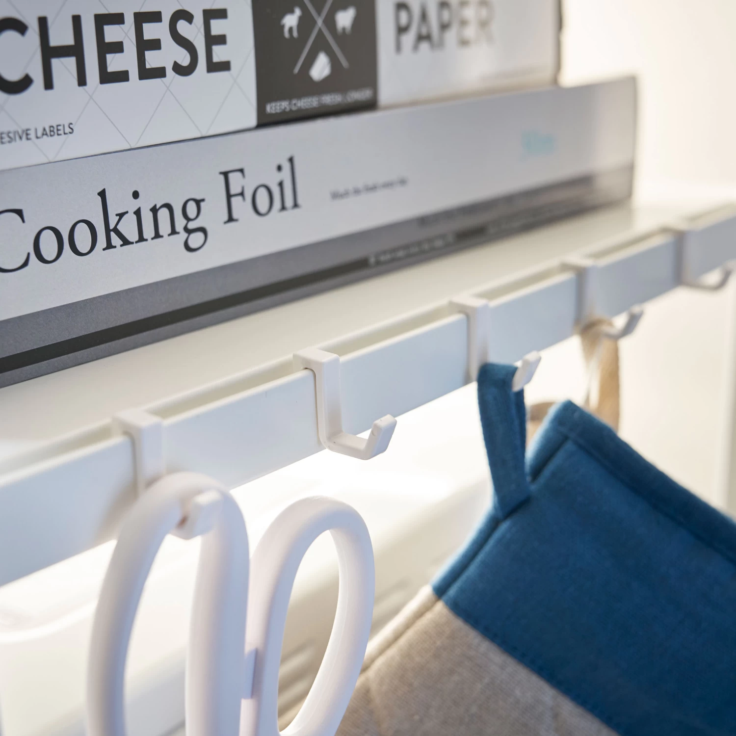We’ve included 5 hooks on the side to allow small items such as oven gloves, measuring cups etc to be stored and the wooden bar at the front is perfect for hand towels and tea towels.