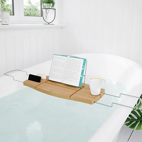 We love the new wine glass holder and an additional middle bar for extra support to prop up your book, magazine or tablet. Making sure you can enjoy your soothing bath together with a glass of wine and your favourite book!