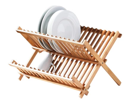 Our bamboo dish rack folds flat for easy storage when not in use, and has a handy lower shelf which is great for mugs and glasses.