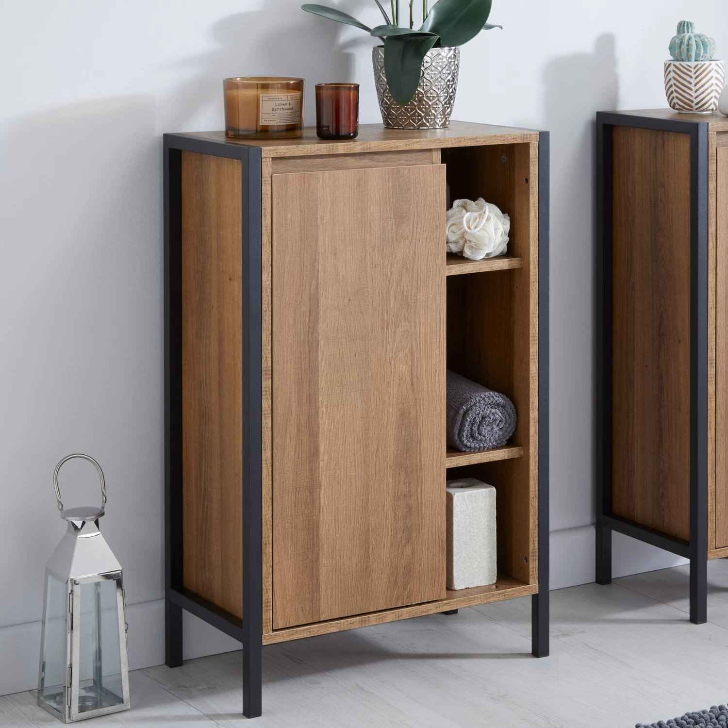 The wood grain effect and black metal detailing will look great in any bathroom or en-suite.