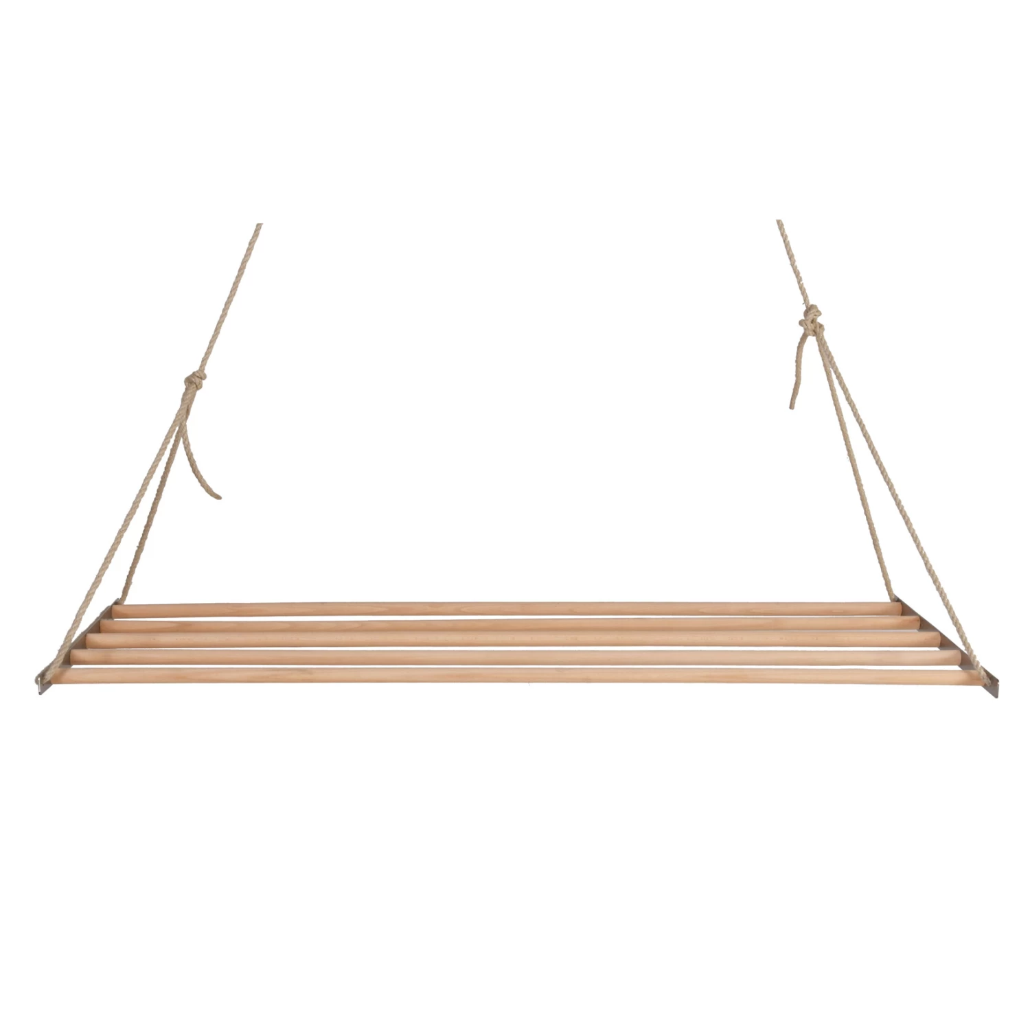 It’s made from beech wood and comes complete with a durable rope and pulley system and stainless steel ends and fittings.