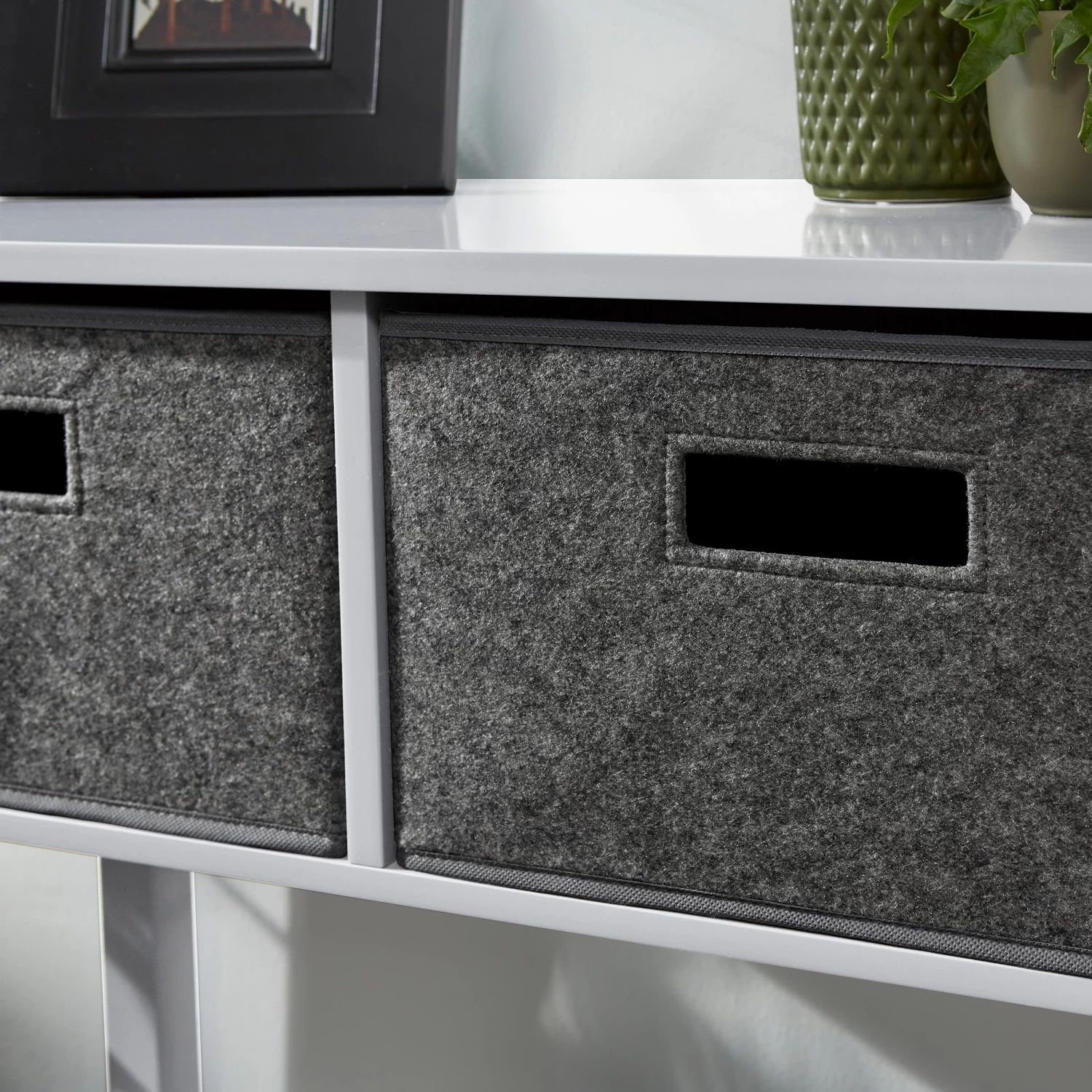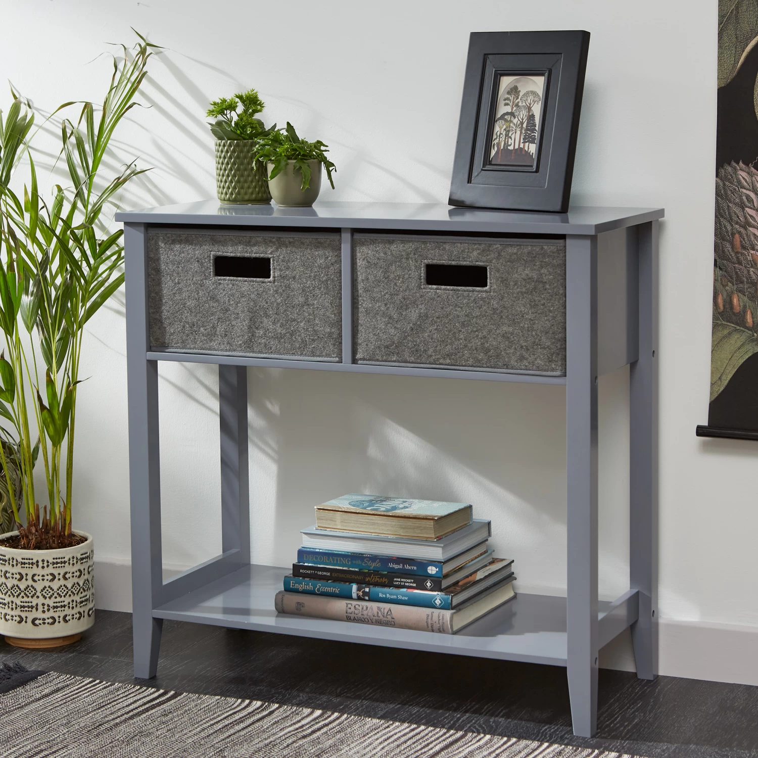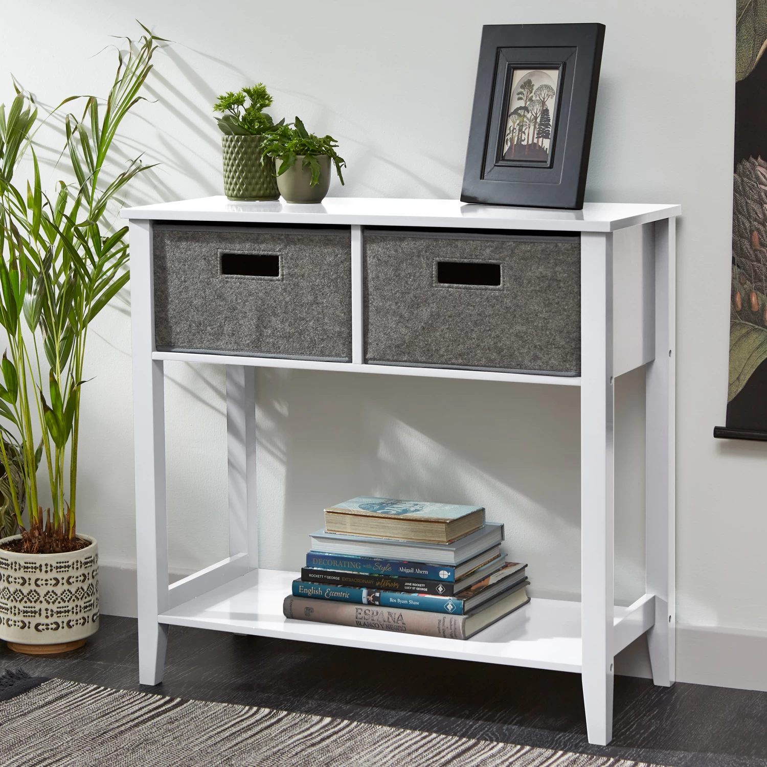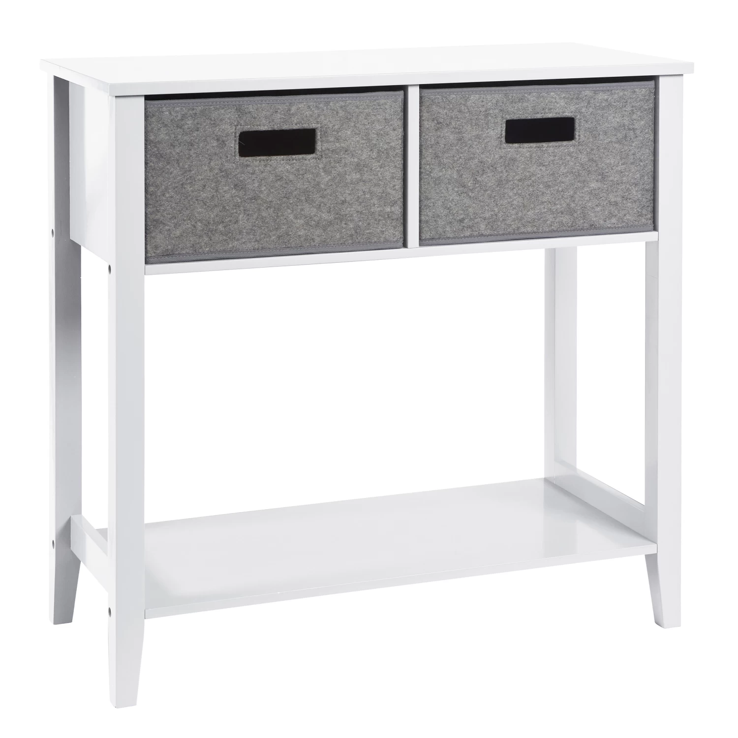 Made from painted MDF and available in either grey or white, our console table features two removable felt drawers and a lower shelf.