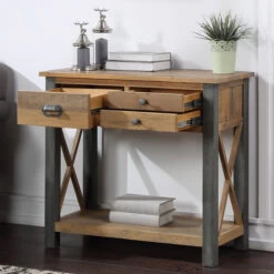 The cabinet can hold Plasma/LCD and LED TVs up to 52″ wide, and there are several cable holes at the back for invisible wiring.