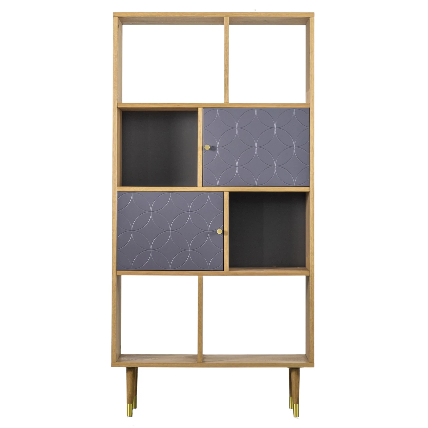 The central shelf units have painted back panels giving a cubby feel, whilst the top and bottom sections have open backs.