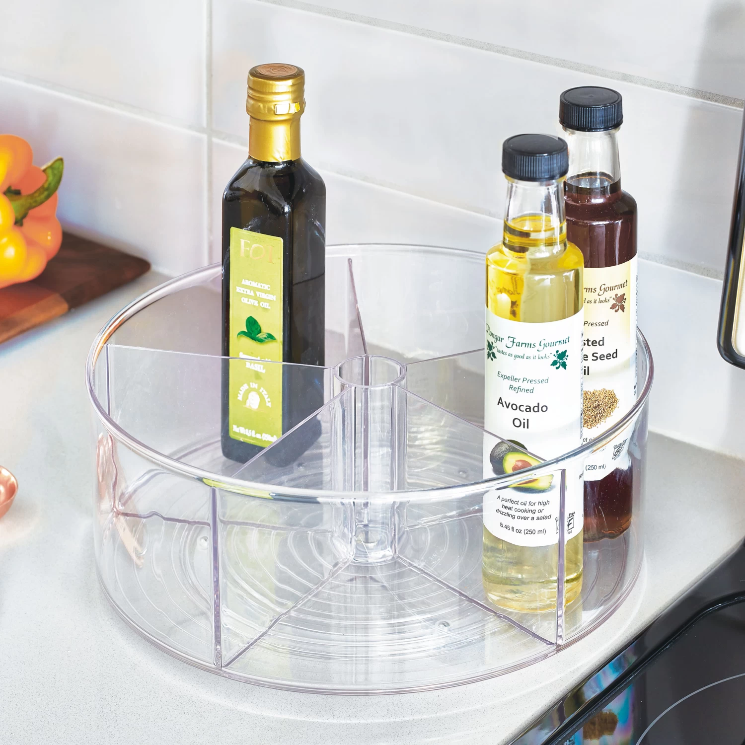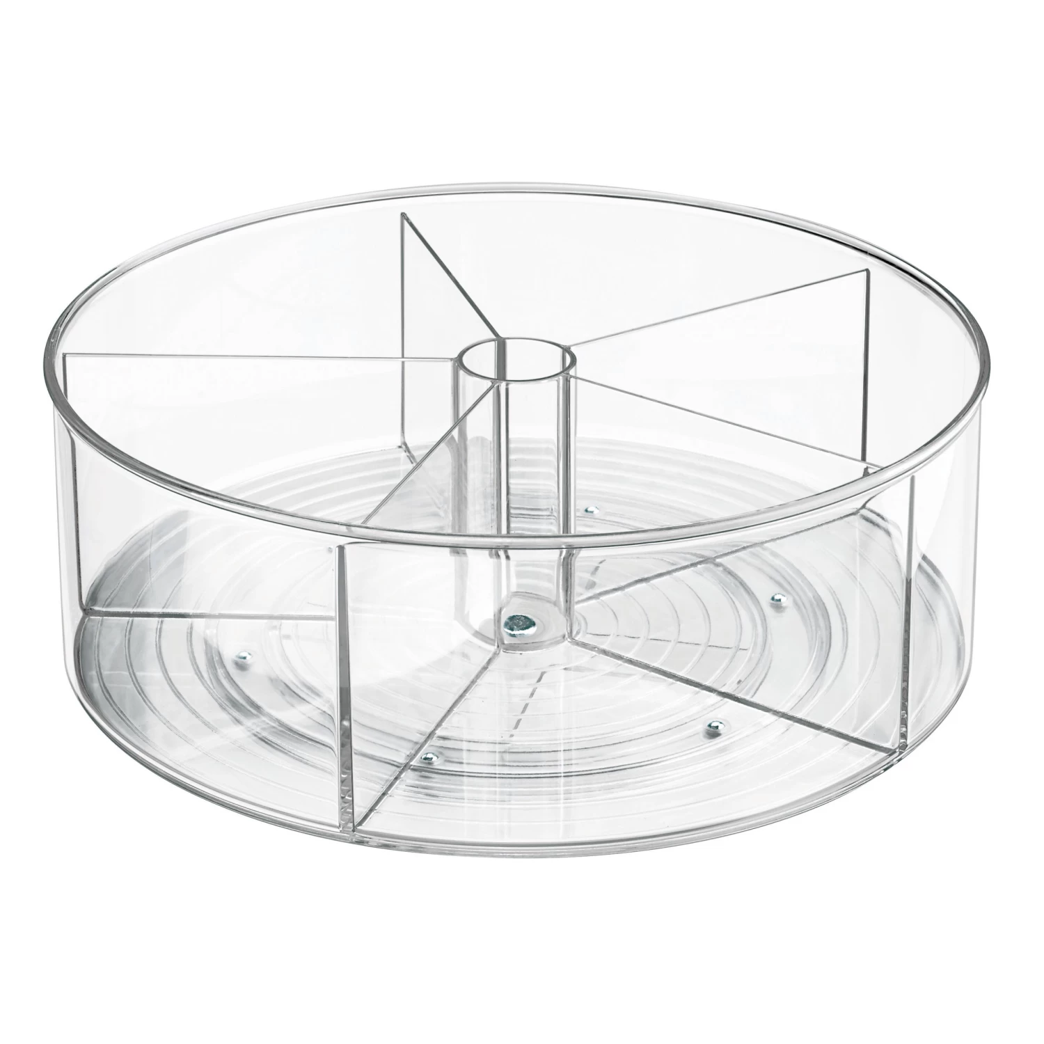 The turntable has been crafted from clear plastic and has 5 equally sized compartments.