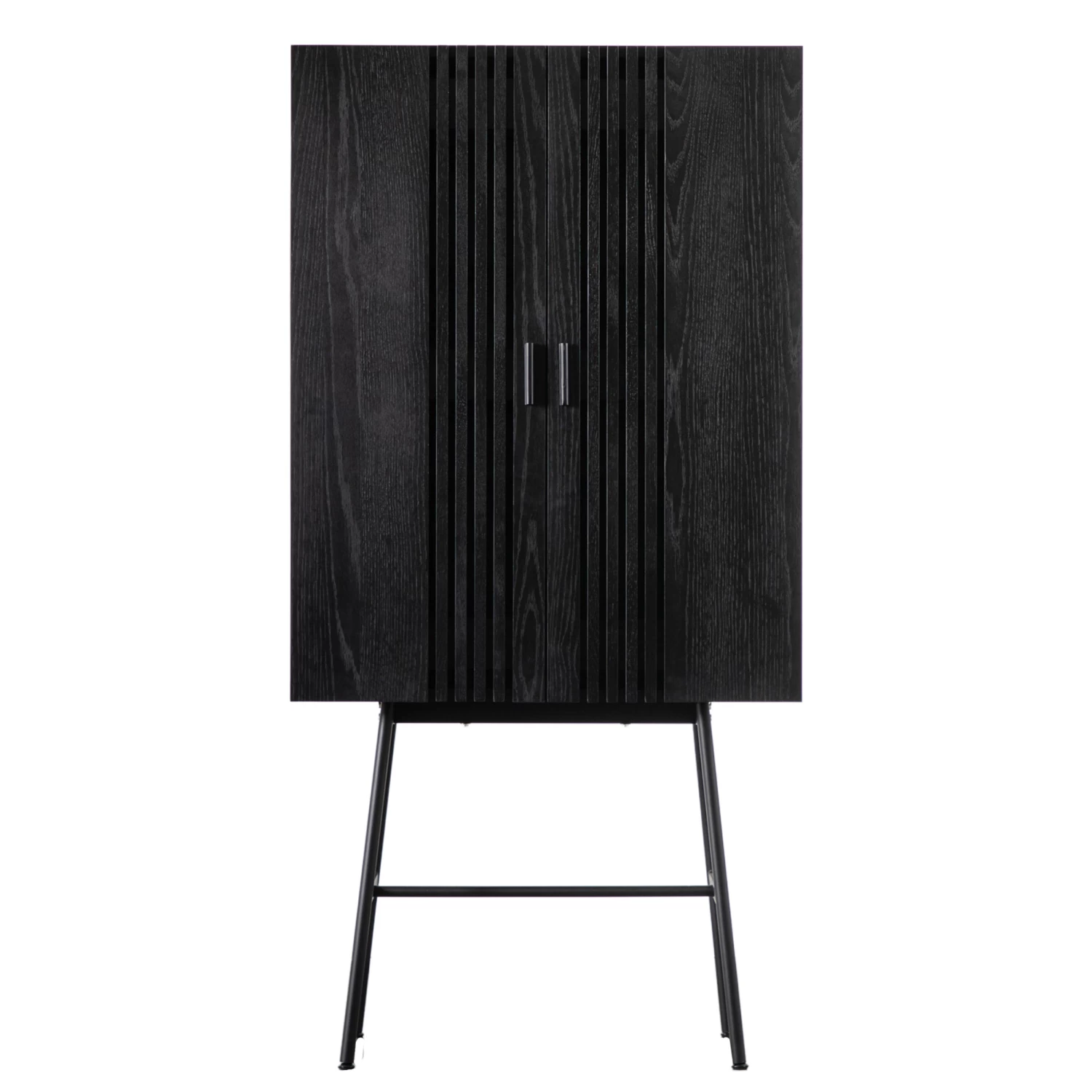 The slatted design on the doors adds interest and the matt black solid oak handles add the finishing touch.