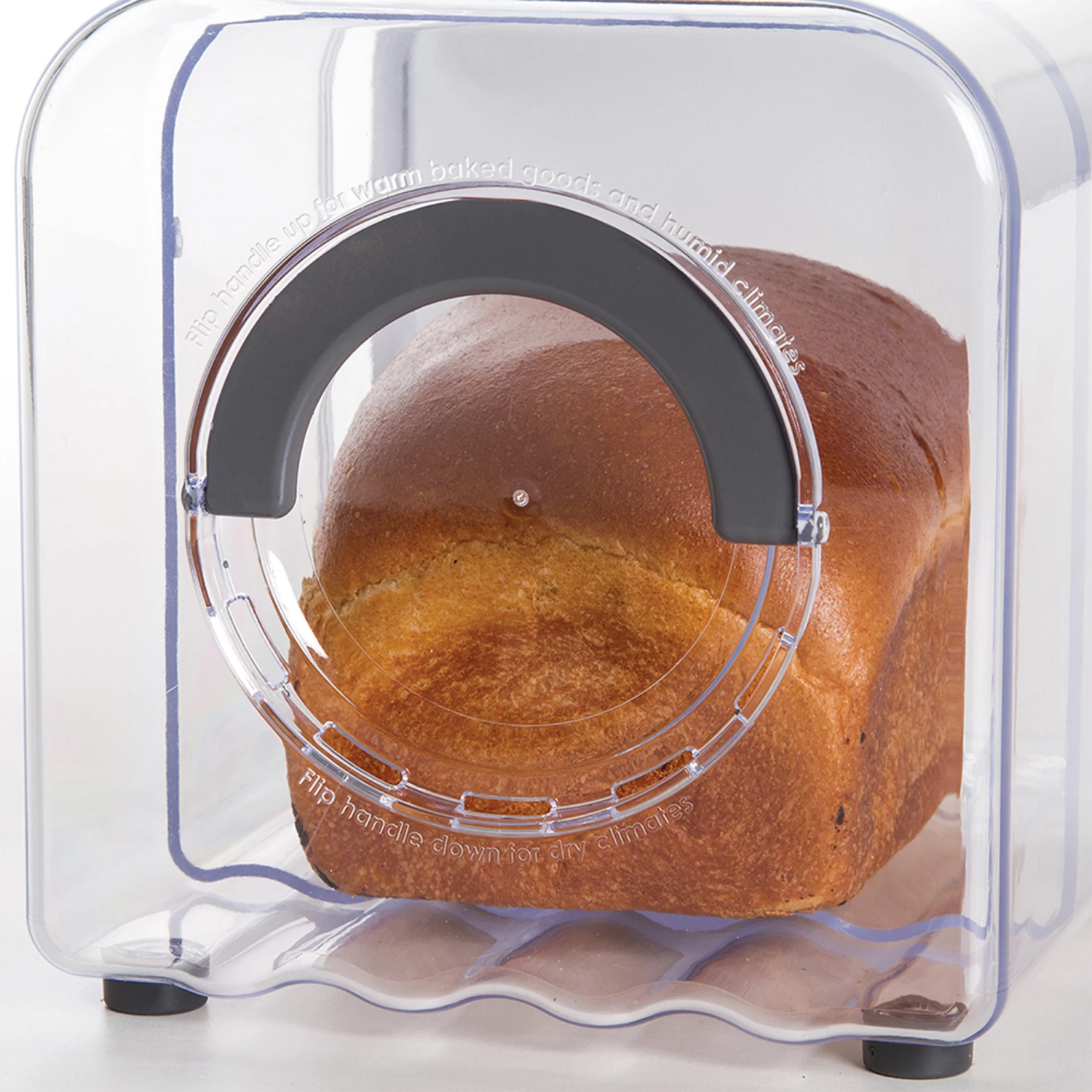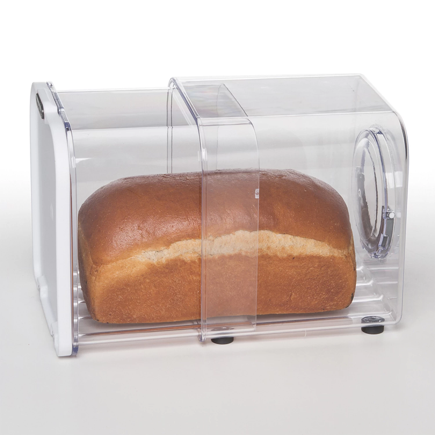 This crystal-clear BPA free bread box neatly expands to accommodate a family loaf or retracts for smaller sliced loaves, bagels and croissants etc.
