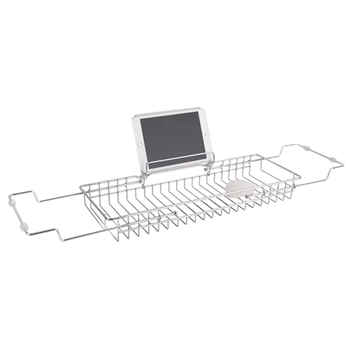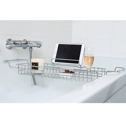Clear rubber grips prevent scratching of the tub surface. It also prevents slippage once in place. Made from high quality iron with a chrome finish ensures this bath caddy is rust-resistant with strength & durability for the daily uses of the bathroom.