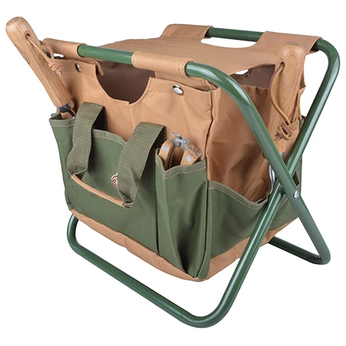 This foldable chair and tool bag can be carried with ease and provides an ideal place to sit while gardening. The removable bag with spacious side compartments provides plenty of space for gardening tools and accessories ensuring they are always at hand when needed.