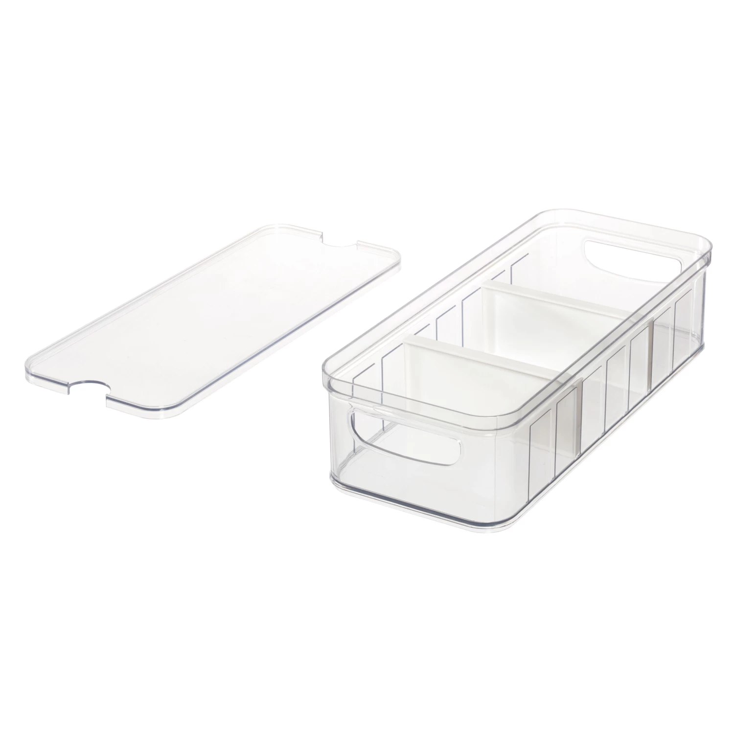 The container features two moveable dividers allowing you to customise the size of each section to suit your storage needs.