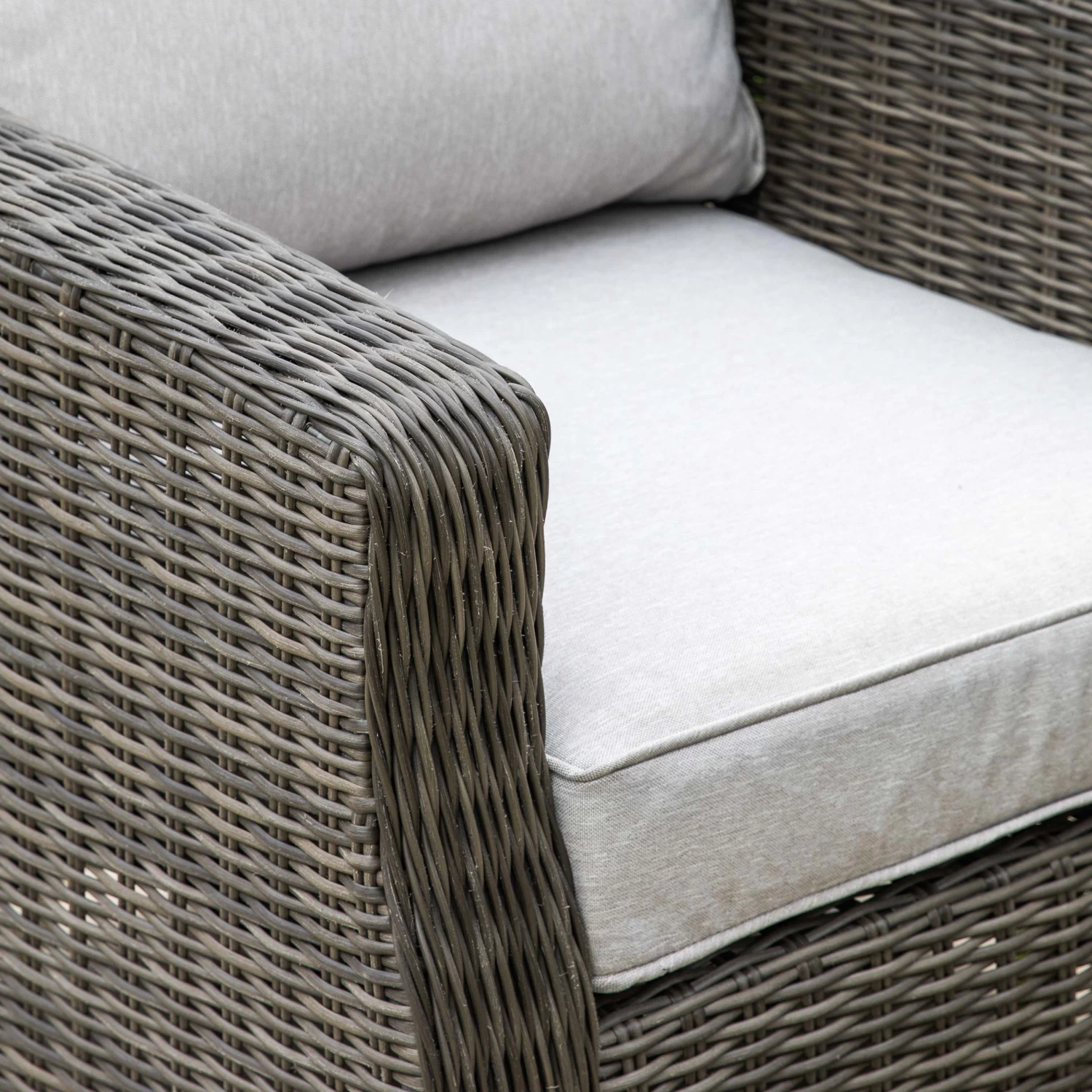 For comfort, the sofa and ottomans have luxurious showerproof cushions in a soft grey colour to complement the colour of the rattan.