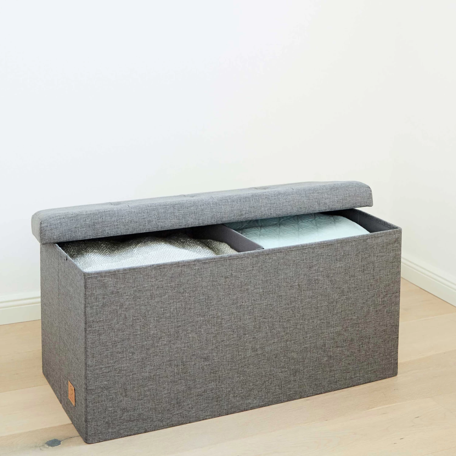 The ottoman has an internal capacity of 80 litres and has a removable divider.