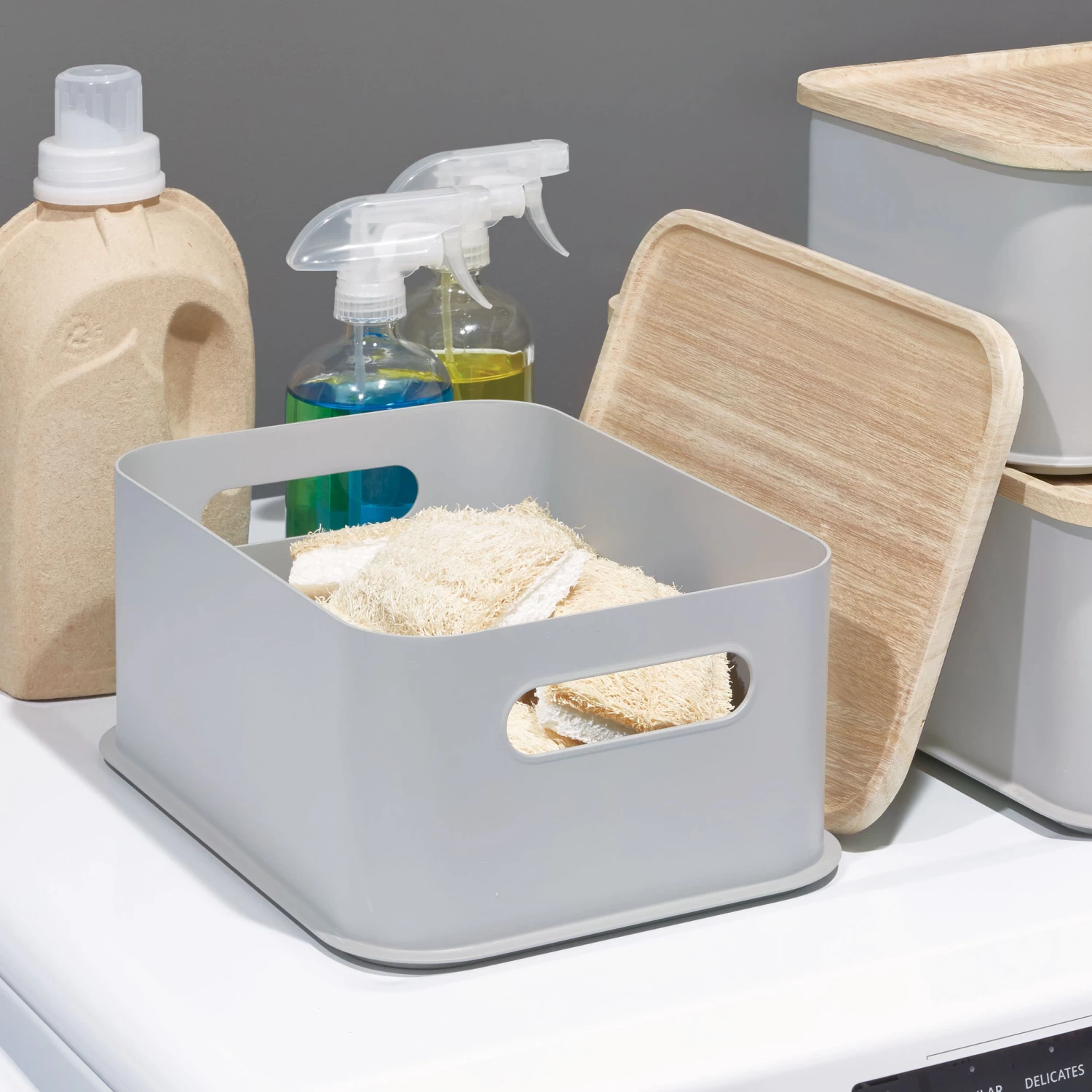The grey bin has been crafted from durable, BPA-free recycled Polypropylene and comes with a sustainable Paulownia wooden lid.