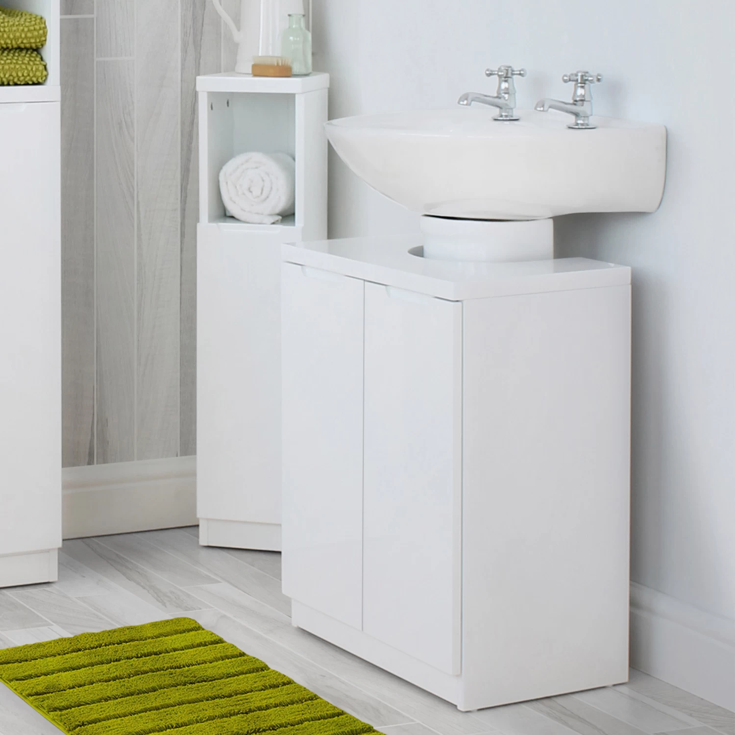 This under sink storage unit is sure to fit in with any bathroom decor thanks to its high gloss finish and sleek grooved handles.