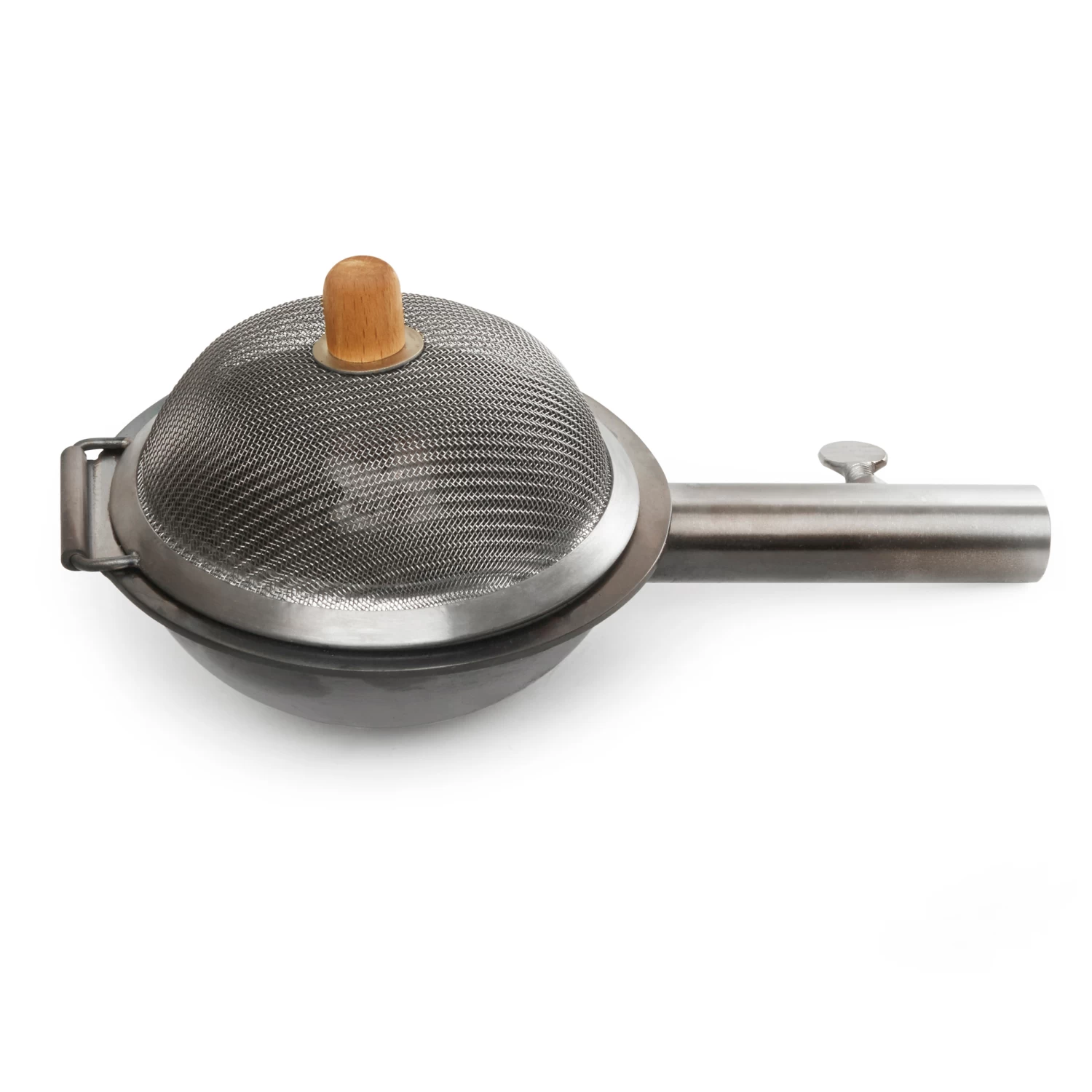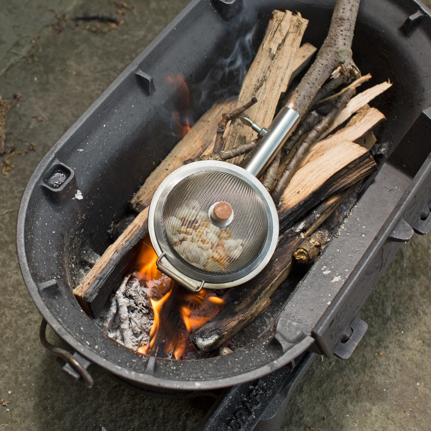 Attach the popper to a stick or dowel (not included) and secure. Add one tablespoon of oil and two tablespoons of popcorn kernels, hold over the fire and listen out of the oil sizzling. Shake the popper over the fire and the popping will begin. Continue shaking over the fire until the popping stops. This means it’s time to carefully open the popper and eat!
