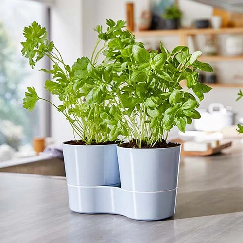 The new hydro herb twin pot is a larger version of the original single pots and can fit two different herb plants in or other little plants.