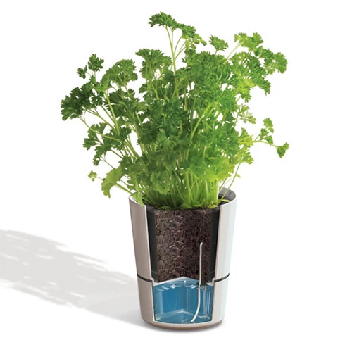 The water reserve can hold up to 1 litre of water and will only need refilling once or twice a week. A cotton cord will allow the plant to absorb the exact amount of water needed to prevent them from drying out.