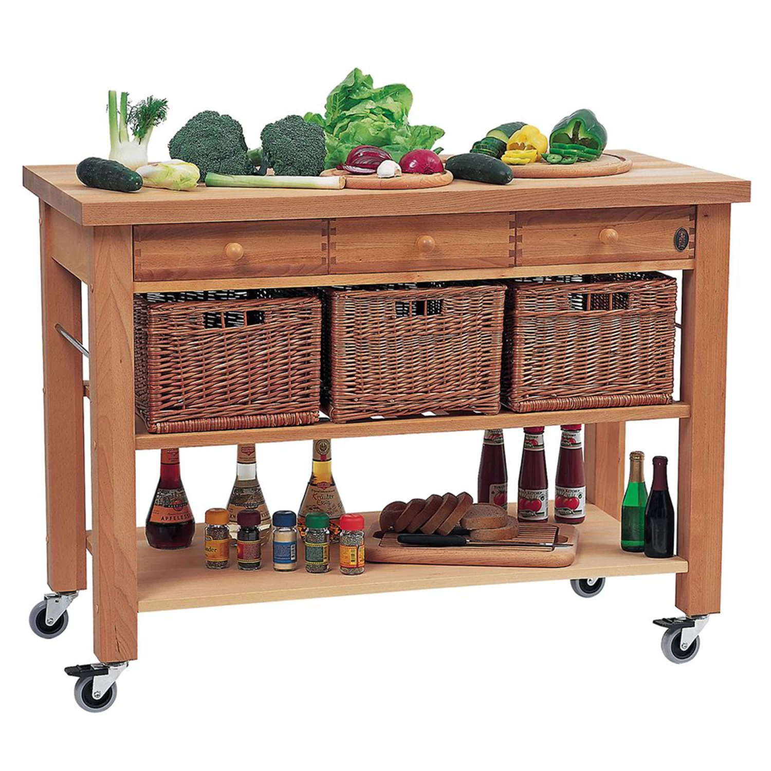 Equally at home in a traditional or contemporary kitchen, this solid beech trolley is ideal for food preparation, additional kitchen storage or serving space. Heavy-duty locking casters ensure maneuverability.