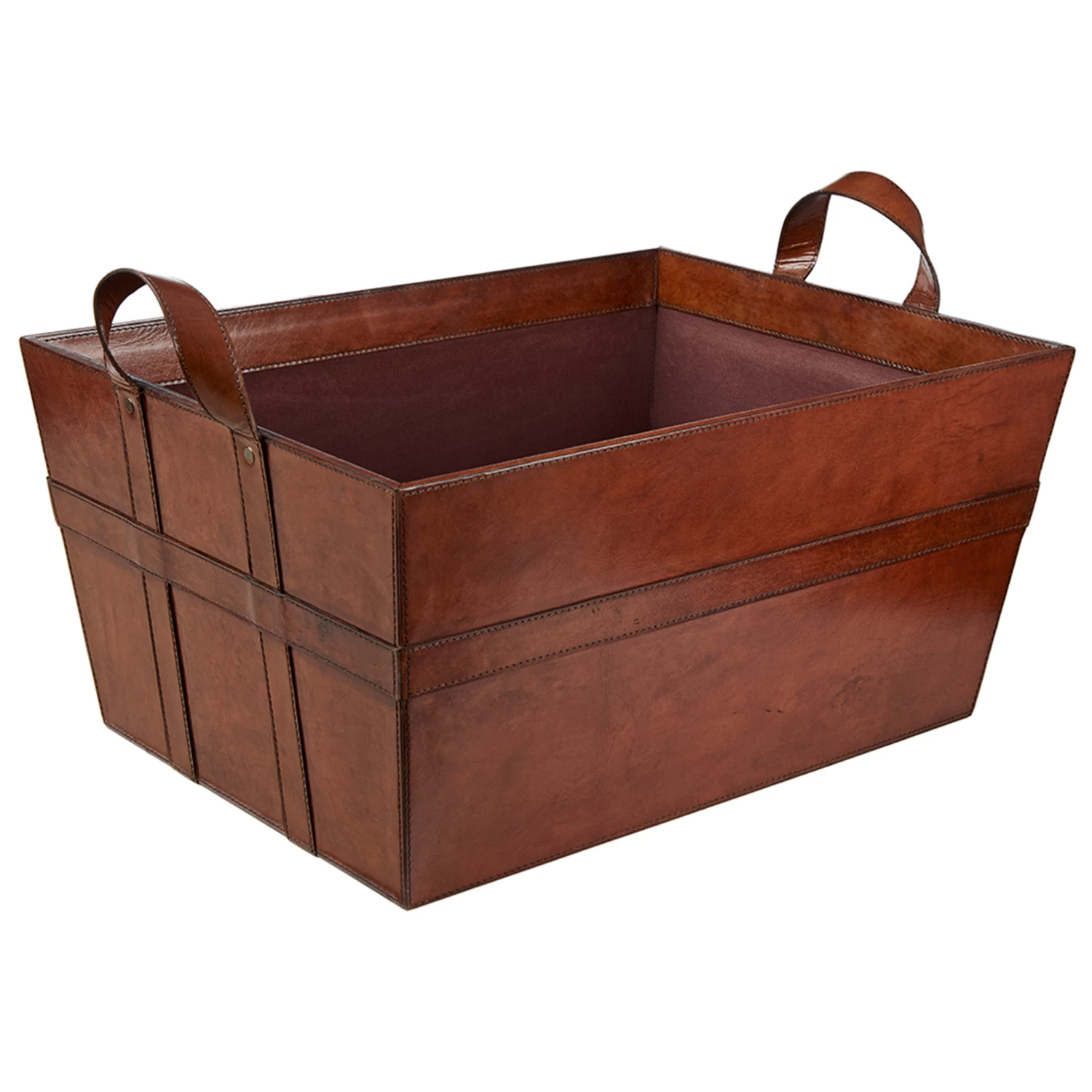 Crafted from a gorgeous conker colour leather, the basket has 2 handles making it easy to move around. It has also been finished with visible stitching and subtle stud detailing.