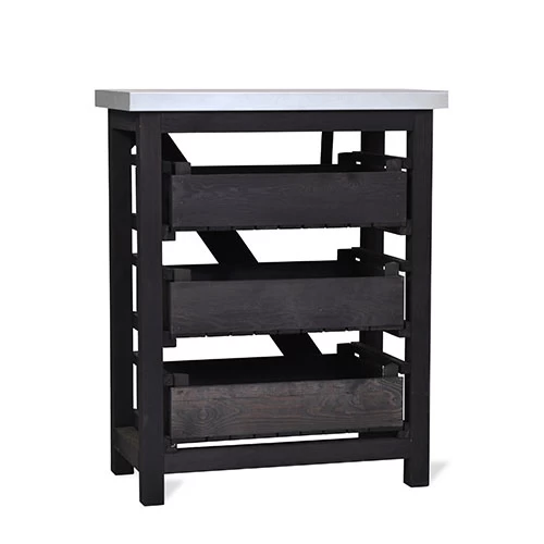 This three-level storage unit is designed to keep a multitude of gardening items stored neatly. Crafted from spruce with a black weatherproof stain helping to keep your garden or potting shed just got easier. The top is made from galvanised sheet metal and it is suitable for both indoor and outdoor use.