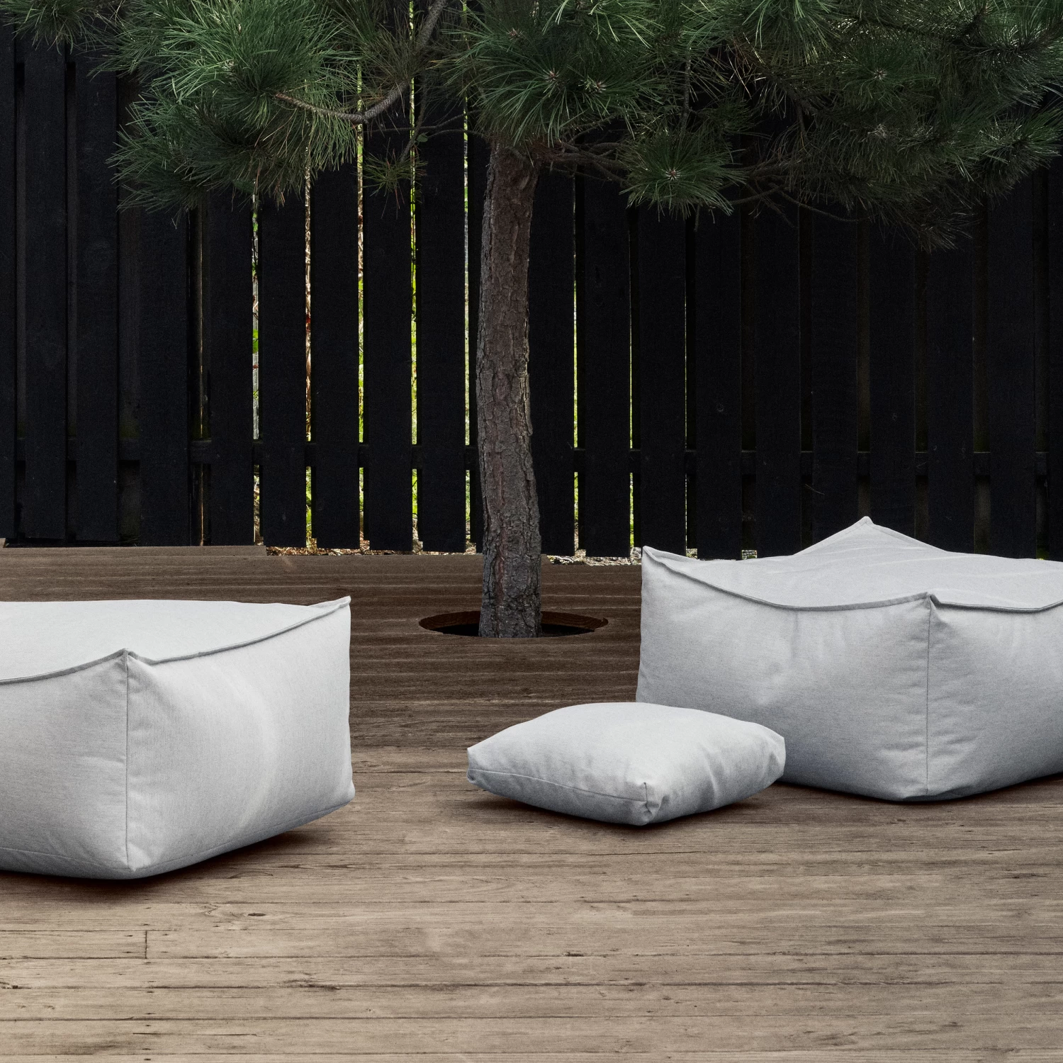 Our outdoor pouf has been crafted from high quality, water-resistant polyester yarn. The outside of the fabric has been specially treated to be water repellent and the inside is lined with a flexible TPU-foil which is elastic and watertight. In addition, the polyacrylate coating makes the fabric extremely durable and UV resistant.