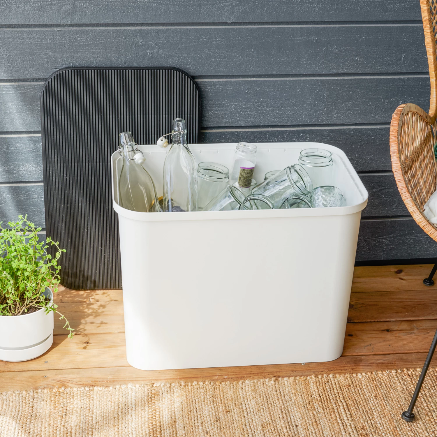 Crafted from 100% recycled plastic, our storage box is available in black or white and comes with a black, waterproof lid.