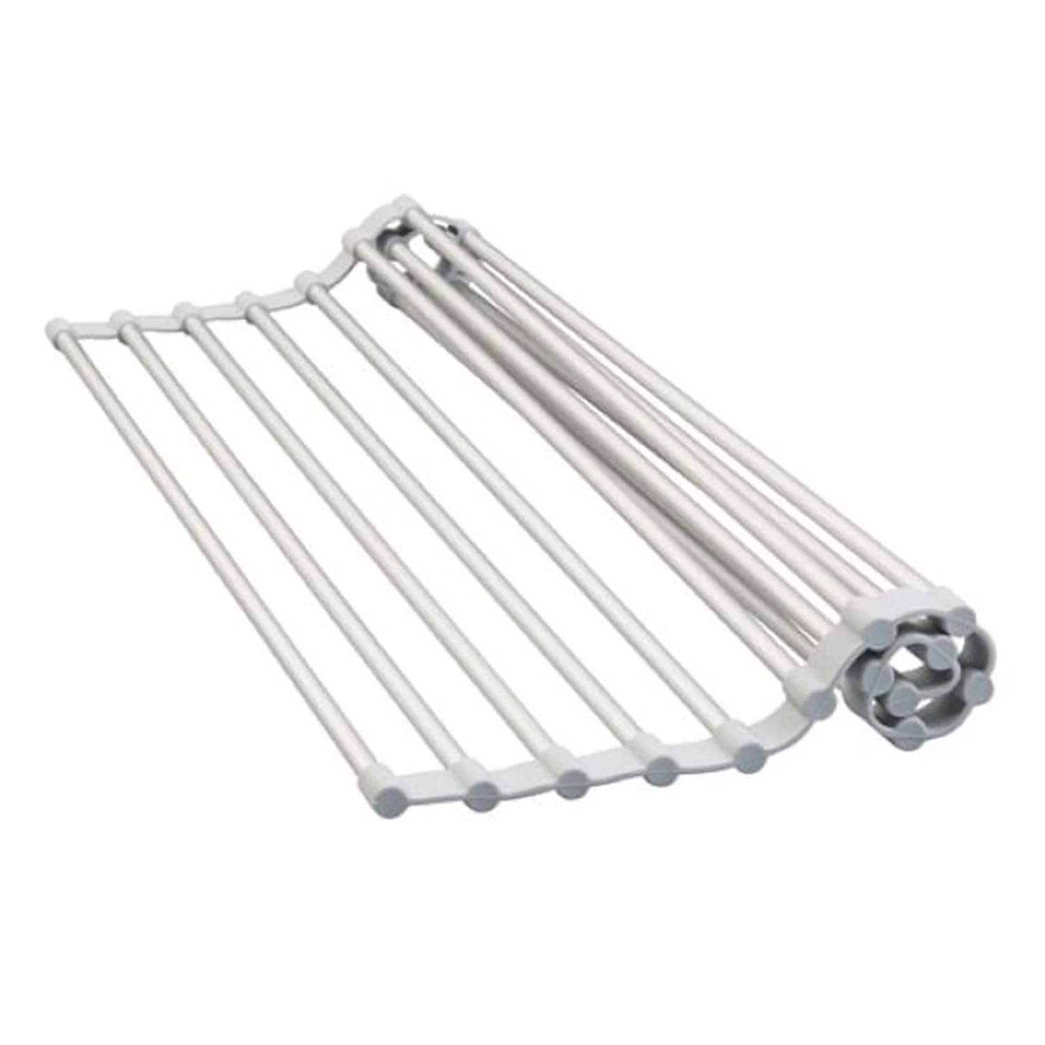 Roll out and use over your sink area (as shown to dry and drain, then roll-up and store neatly inside a drawer when not in use. What a great idea for boats, caravans and compact city living.