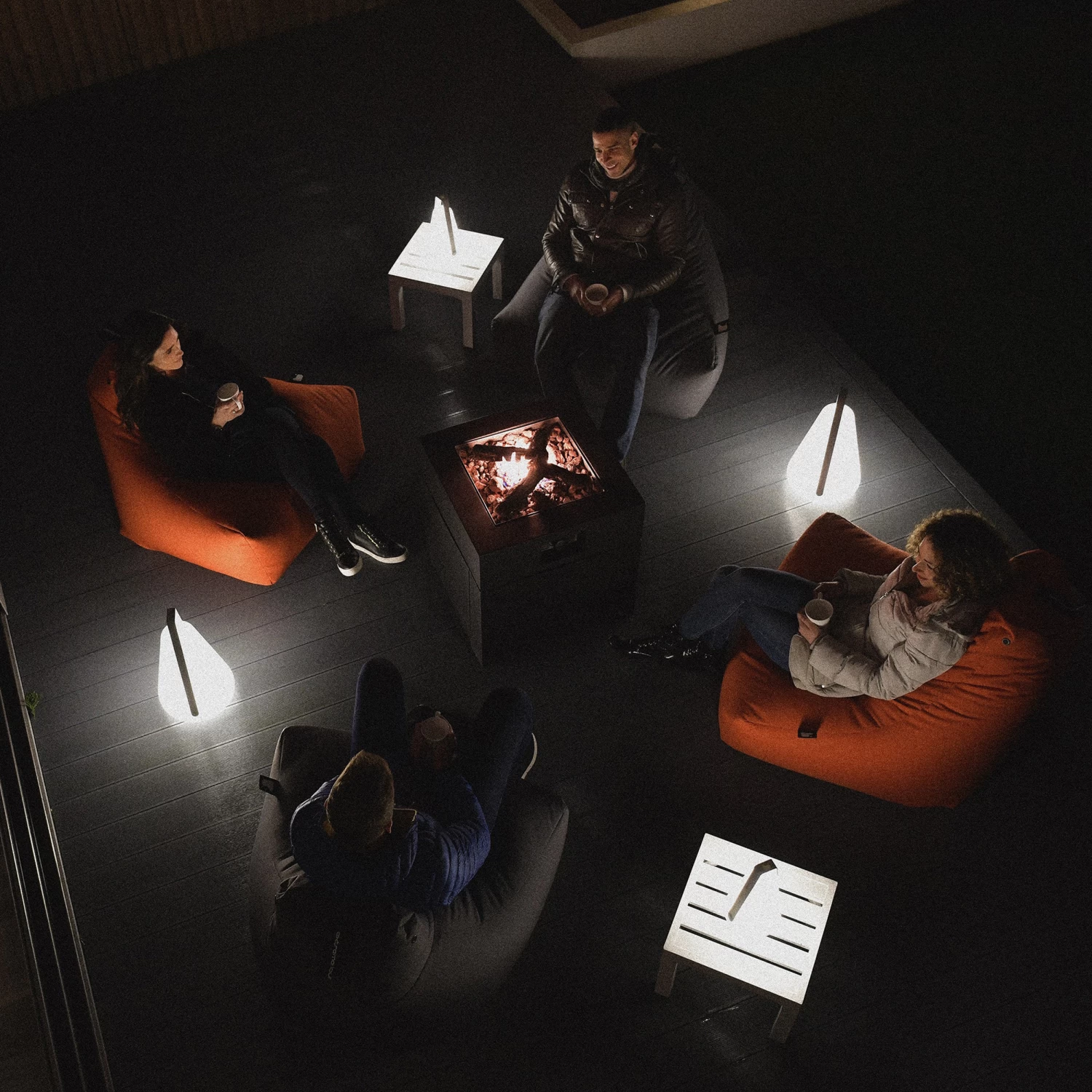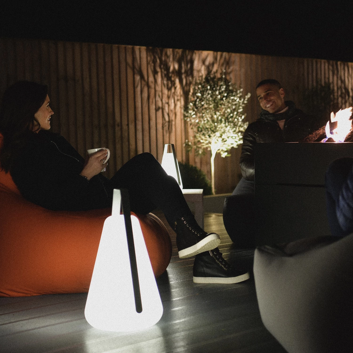 The stylish looking lamp is moulded from rotational plastic and when illuminated the whole piece radiates a warm uniform glow. We think it offers a refreshing take on the traditional side-table lampshade casting shadows. It also eliminates that messy power cable for a clean look.
