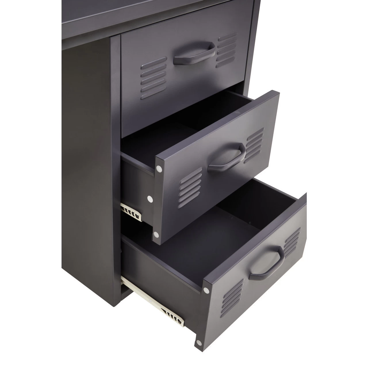 Each drawer has retro locker-style fronts with vents, and an easy-to-use handle.