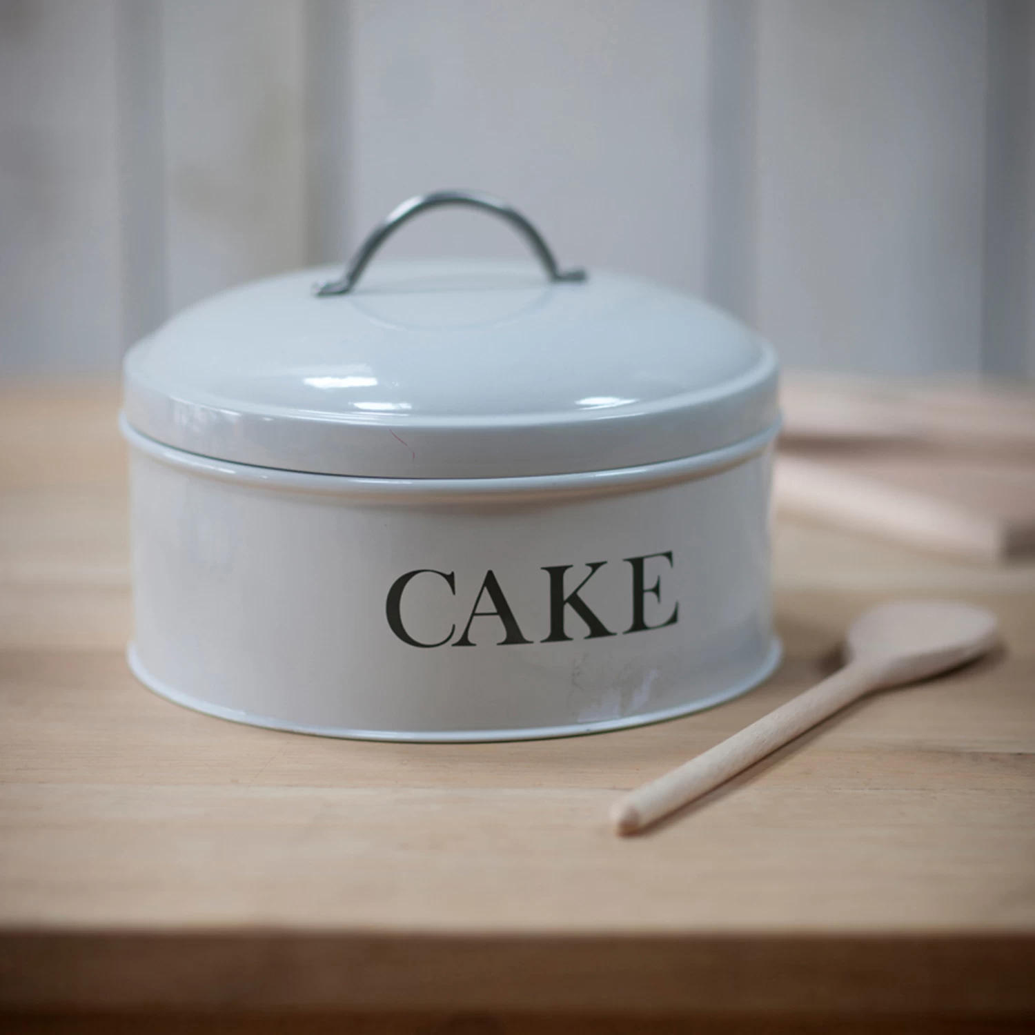 Crafted from powder coated steel with a chalk finish, our cake tin has a tight sealing and high domed lid making it ideal for storing even the tallest of cakes or how about a mountain of cookies.