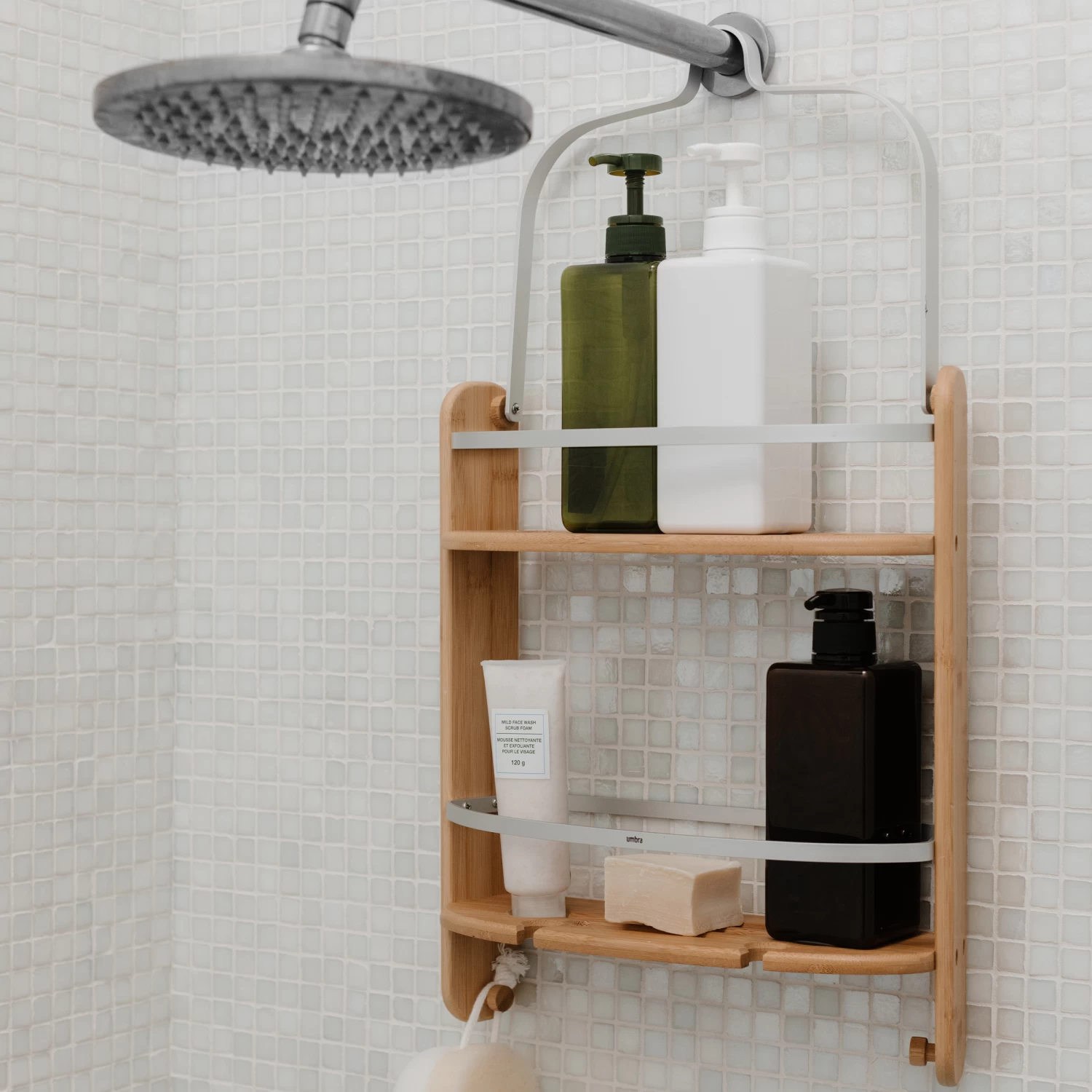 We love this stylish mildew resistant bamboo and aluminium shower caddy designed by Anthony Keeler. This chic bathroom storage caddy has plenty of space for your lotions and potions on the 2 large, self-draining shelves and there’s a razor holder and hook for flannels etc.