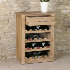 Our solid oak wine rack can store up to 20 bottles of your best wine, and the neck supports will keep each bottle in place.