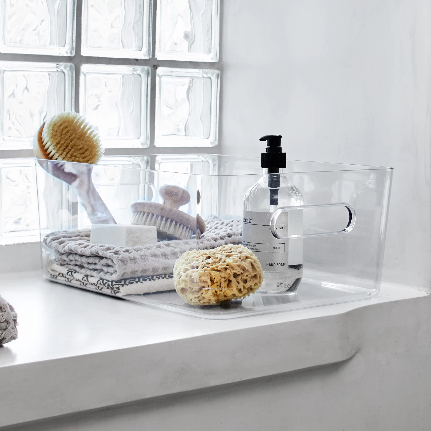 The large base is the perfect size for storing toiletries, spare toilet rolls, folded hand towels, hair straighteners etc and the integrated handles make it easy to move around if needed.