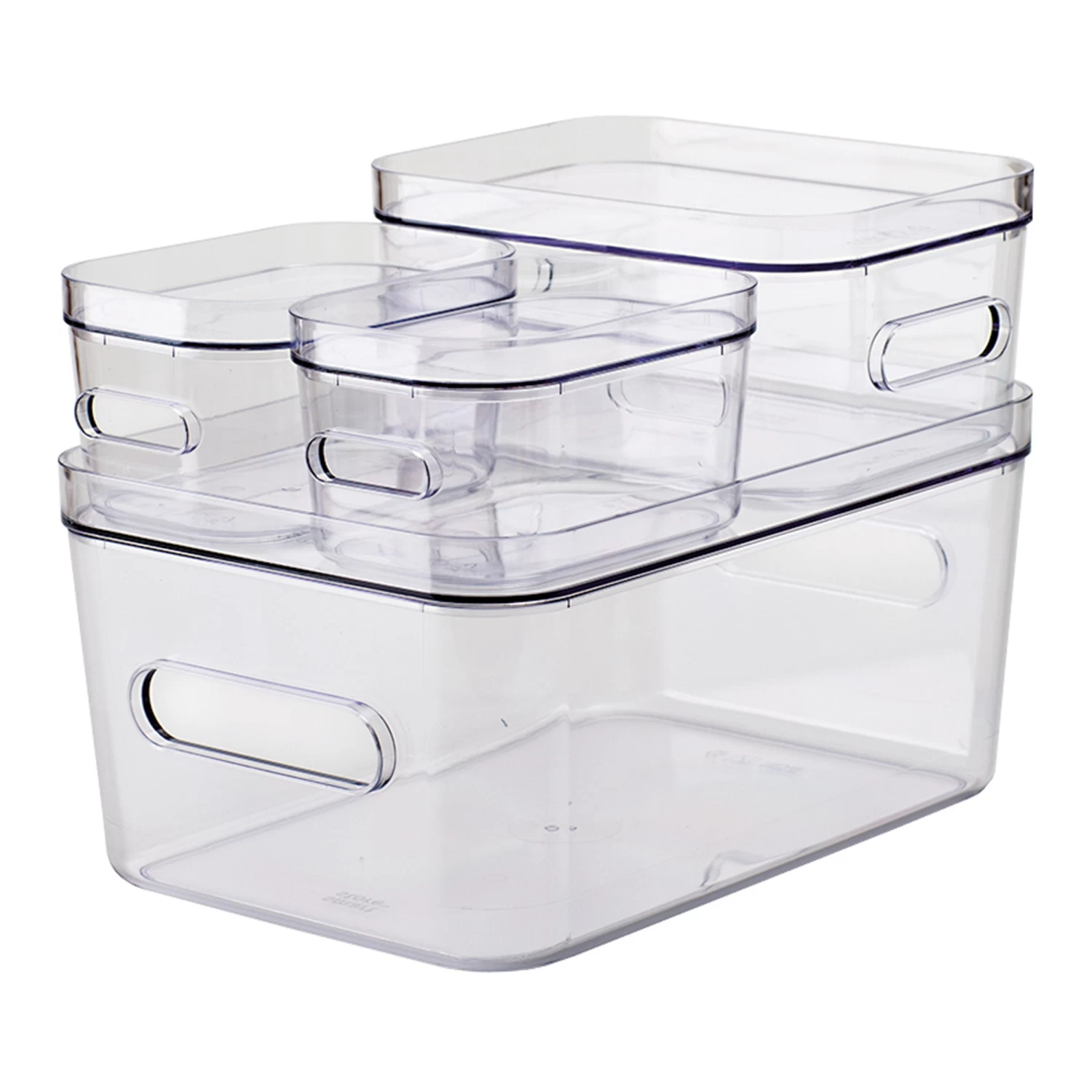 The bundle includes 1 x large, 1 x medium and 2 small 2-piece storage bins with lids.
