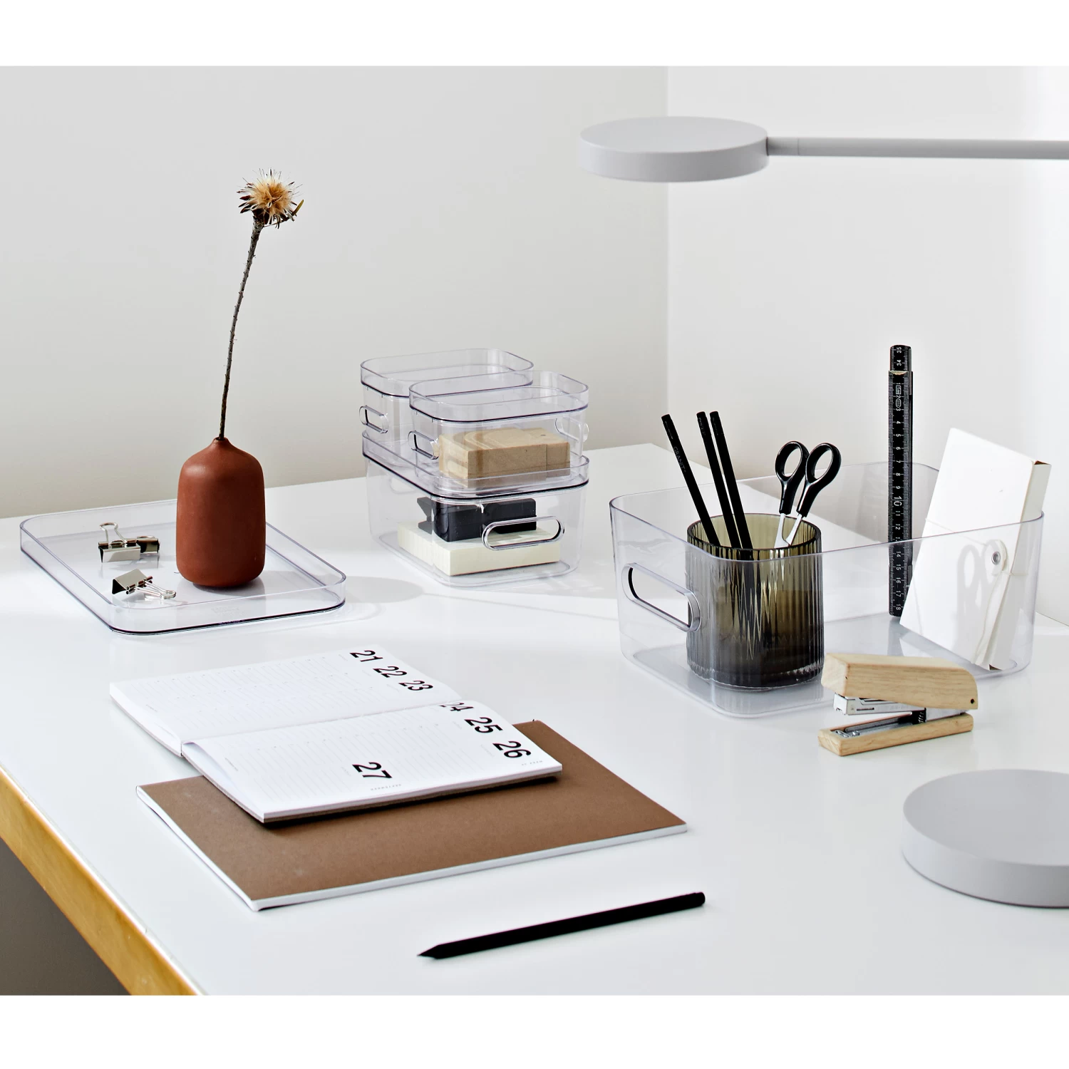 Featuring built-in handles, the boxes are great for storing all manner of things. Use in the fridge or kitchen cupboards for storing fruit, veg, jars etc, in a home office for stationery, note pads etc or how about in the bathroom for storing cosmetics and lotions and potions.