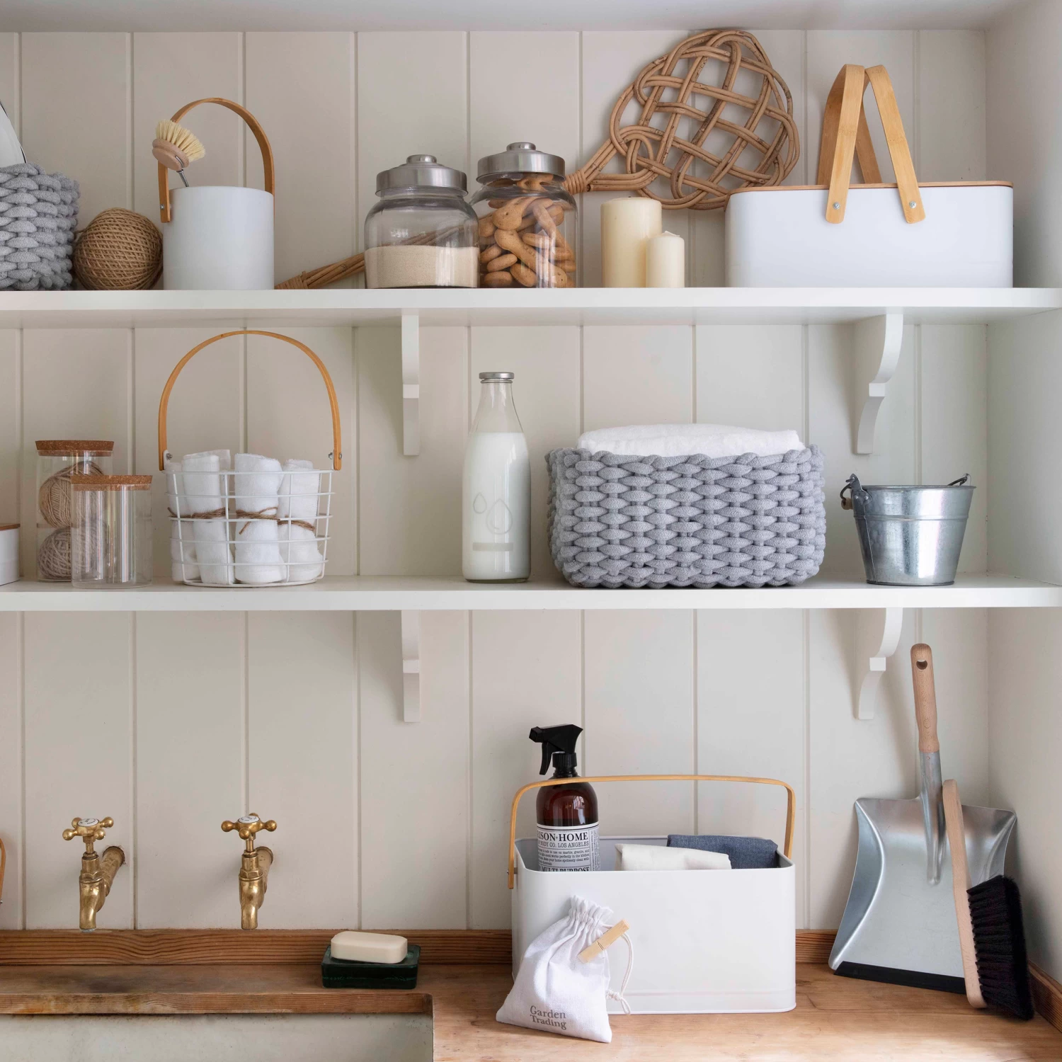 Crafted from white powder-coated steel, our Portland caddy has a useful carry handle which has been crafted from sustainable bamboo.