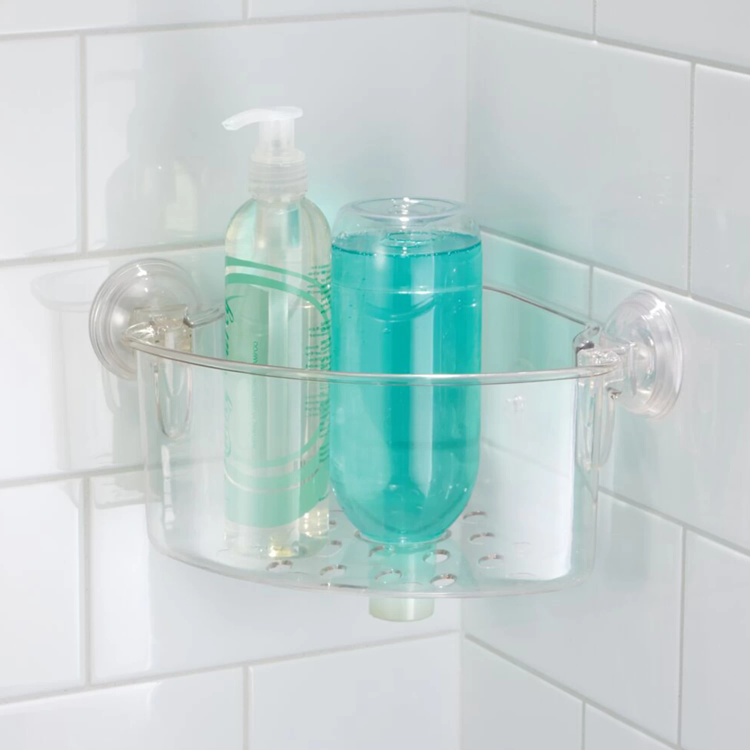 Make full use of the corners of your bathroom or shower with the suction “Power Lock” Corner Basket.