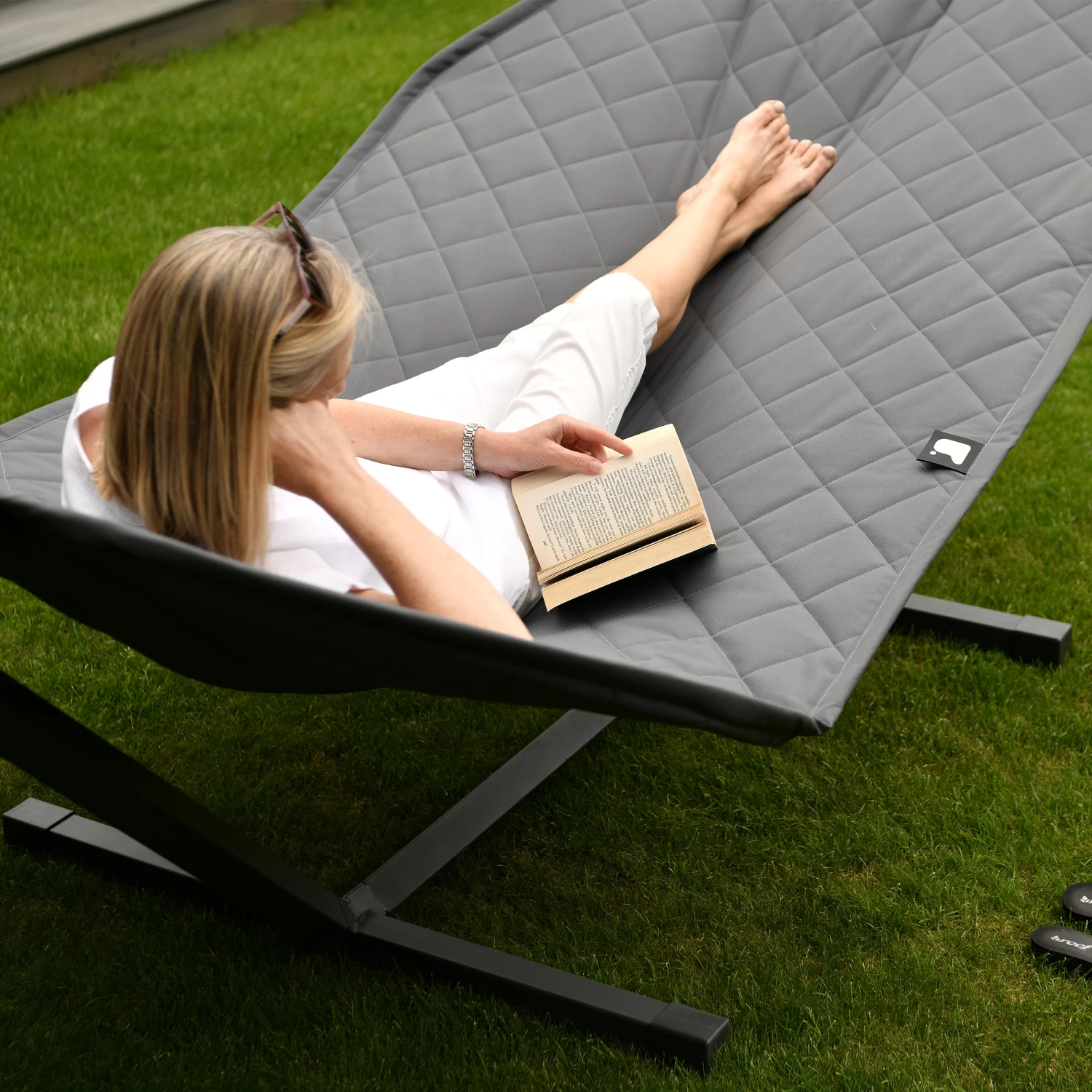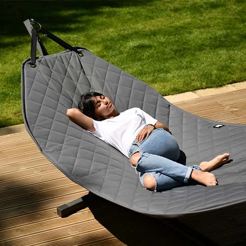 Tried and tested, we love this comfy quilted and padded waterproof hammock and the ease with which it can be taken down from its sturdy frame for overnight storage (or when that inevitable British rain shower appears on the horizon!).