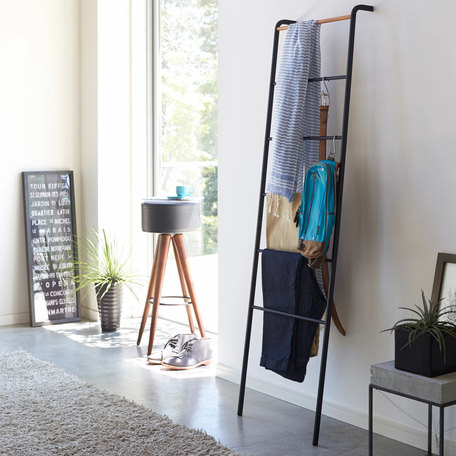 Designed by our good friends at Yamazaki in Japan, our leaning ladder towel rail comes in a choice of black or white and is finished with neat wooden detailing on the top rung.
