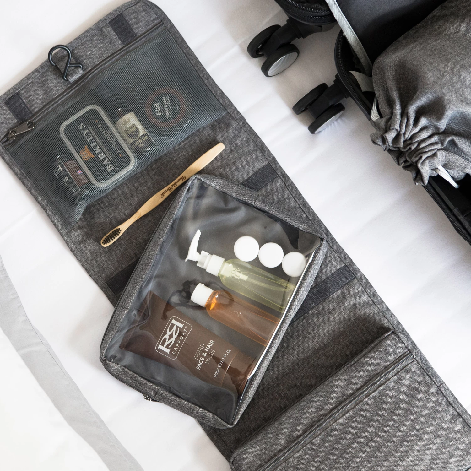 The well-designed cosmetic and toiletries organiser has two concealed zipped pockets, a mesh pocket to sort small items that need to be visible, as well as a detachable pocket with clear plastic window. A great idea to help save time at security checks.