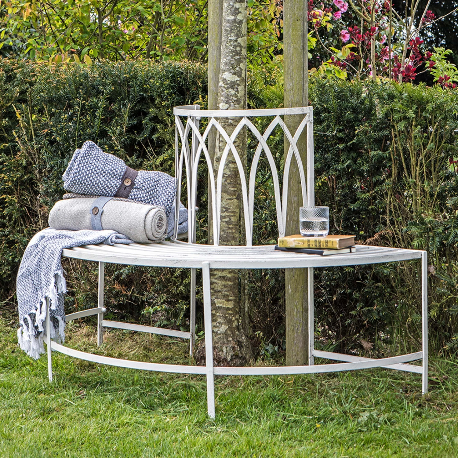 This beautiful tree bench fits around a tree trunk to provide a comfortable shaded seating area.