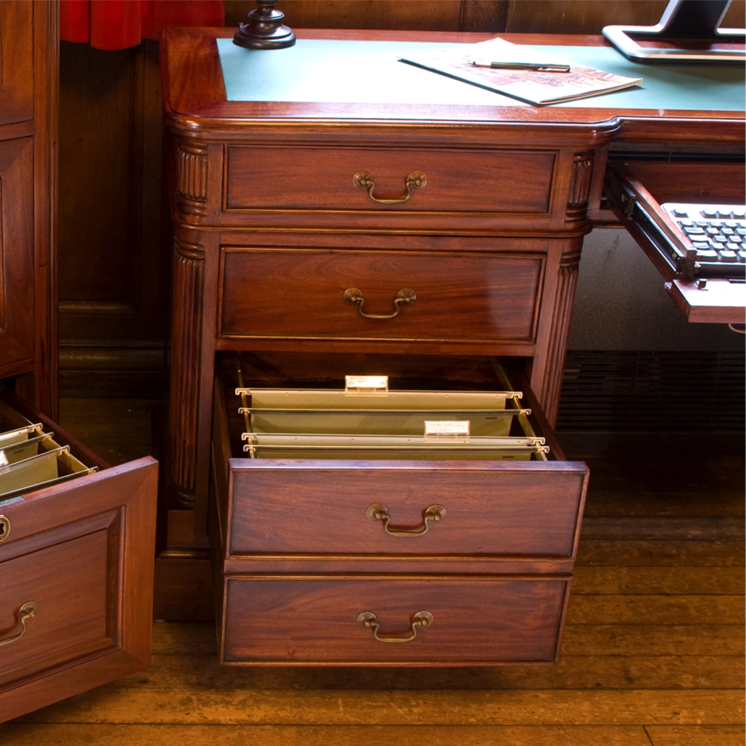 Our solid mahogany twin pedestal computer desk will look just as at home in an office as it would in a living room and has plenty of storage space for all of your computer accessories.
