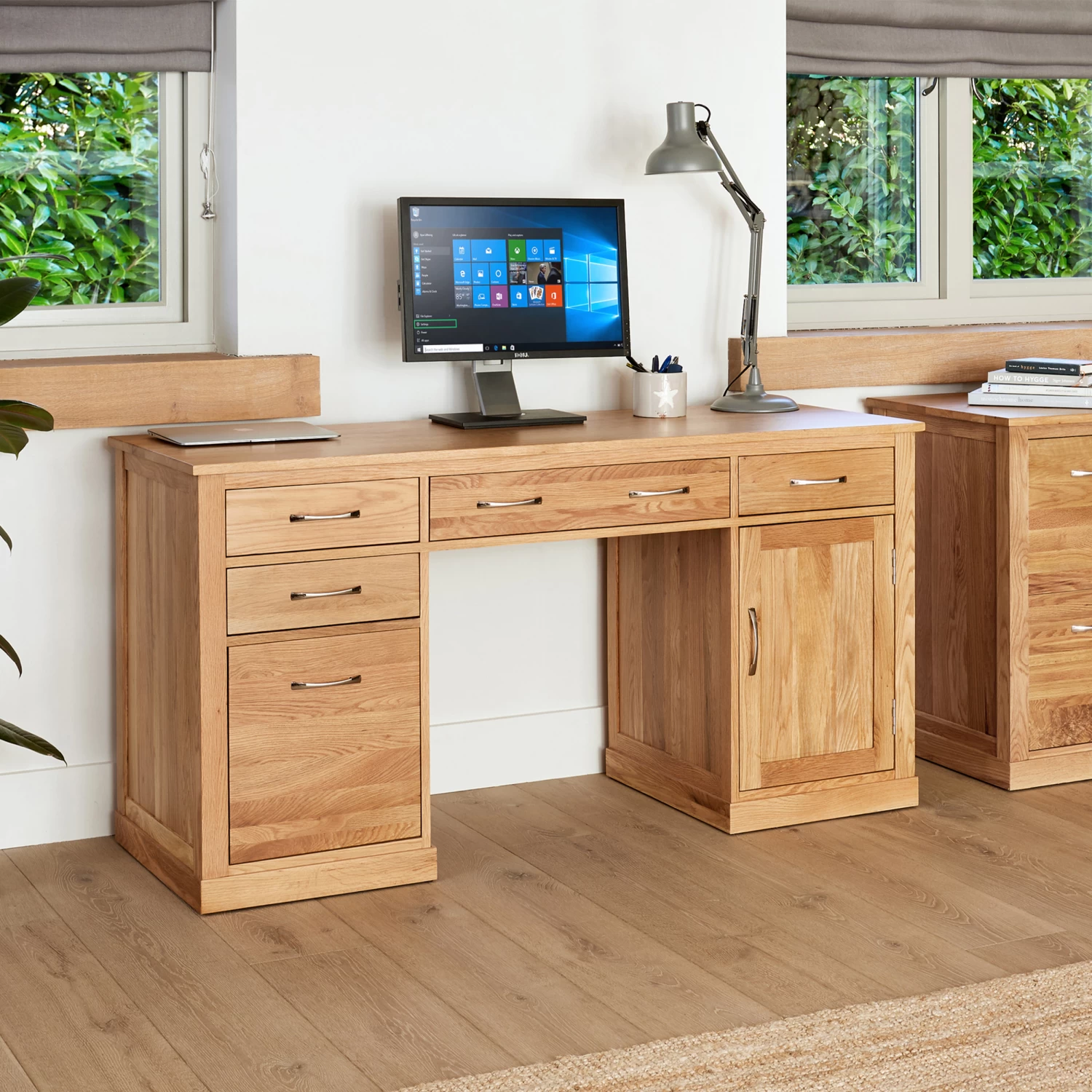 Our solid oak twin pedestal computer desk will look just as at home in an office as it would in a living room and has plenty of storage space for all of your computer accessories.