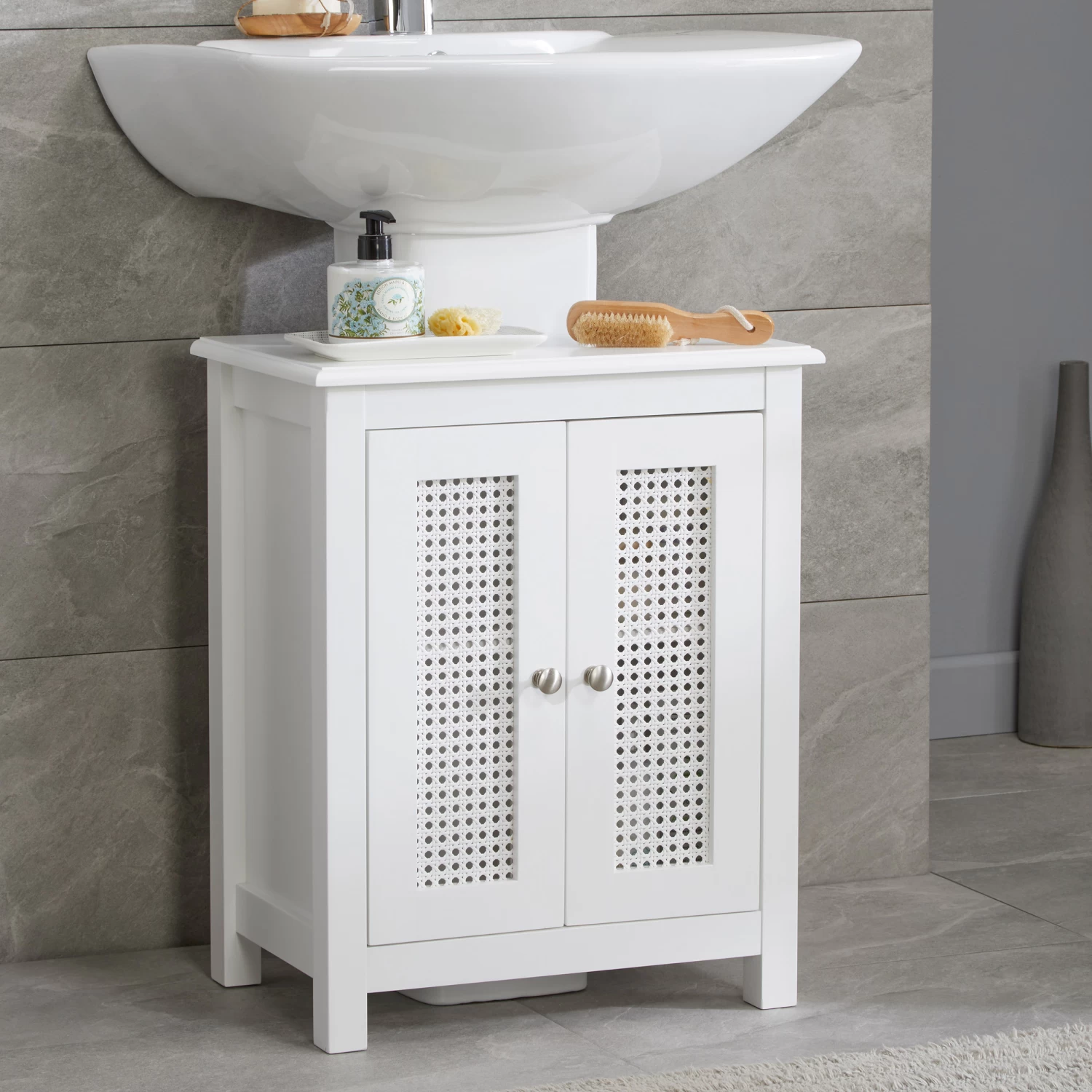 This under sink storage unit is sure to fit in with any bathroom decor.