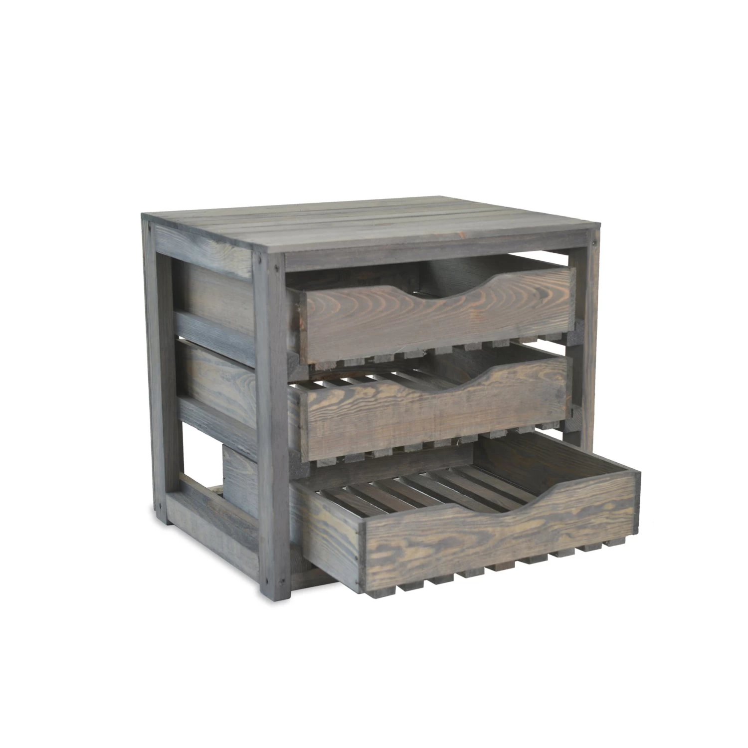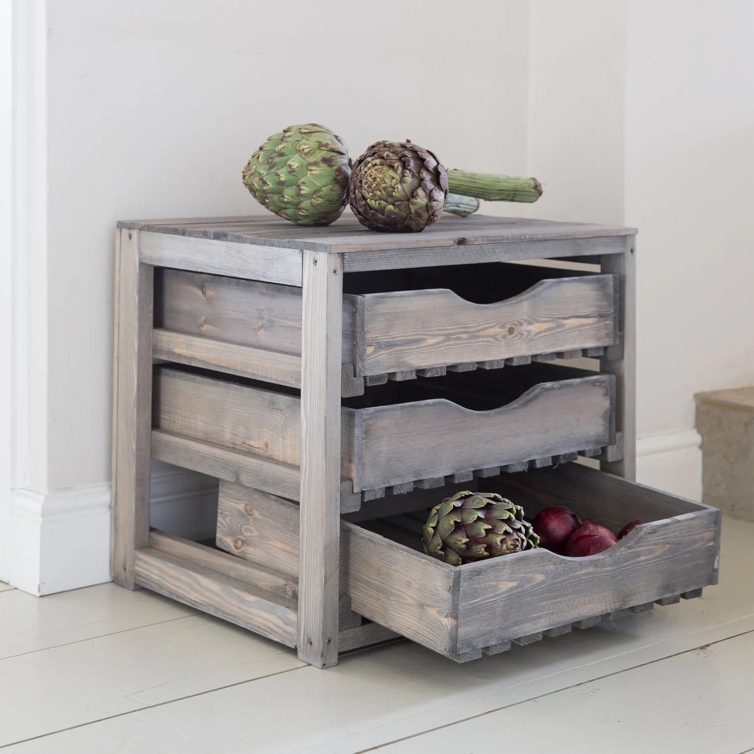 Three drawer spruce wood vegetable storage box to store the harvest from your veggie patch or the local supermarket.