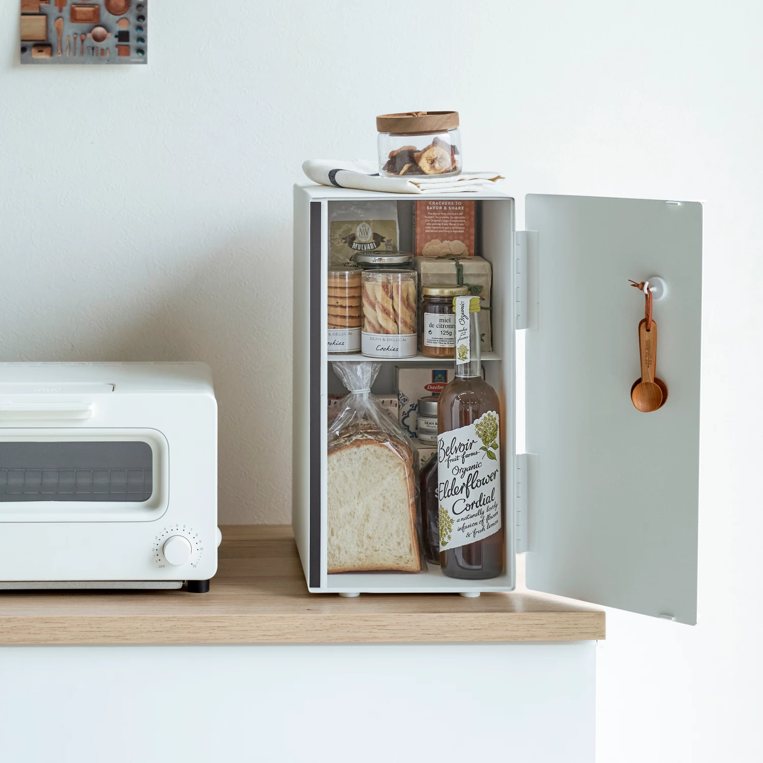 Not just for use as a bread bin, this handy storage solution also doubles up as a freestanding countertop storage cupboard.