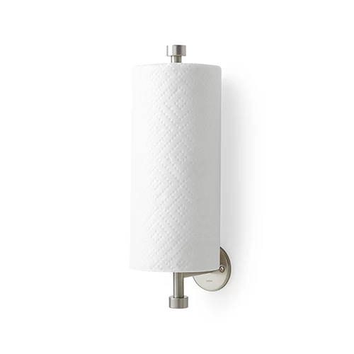 This wall mounted kitchen roll holder comes in a nickel finish with round finials. A simple and elegant design that can tackle regular use with ease. Guaranteed to fit in with multiple decors and spaces.